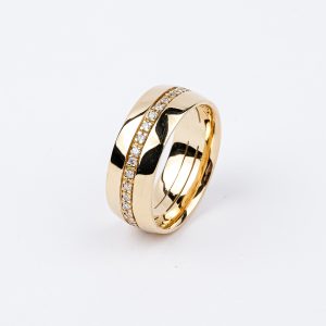 Aliança Ouro Amarelo 7Mm Com Diamantes