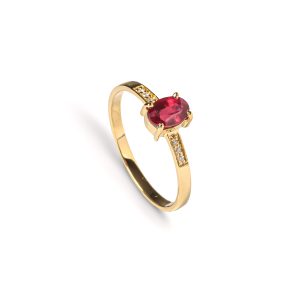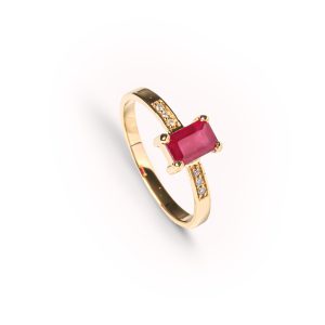 Anel ouro amarelo com Rubi
