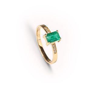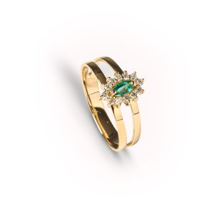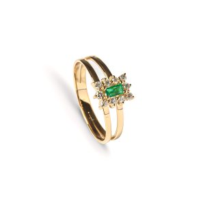 Anel Ouro Amarelo com Esmeralda e Diamantes