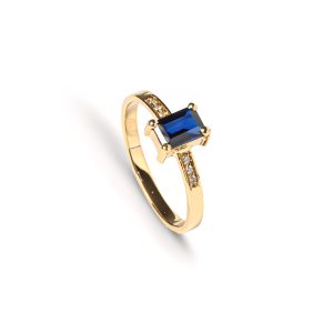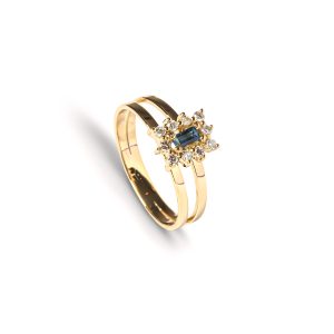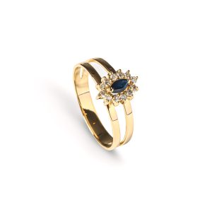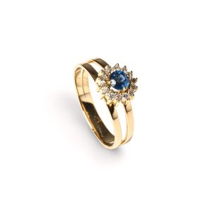 Anel Ouro Amarelo com Safira e Diamantes