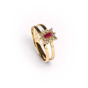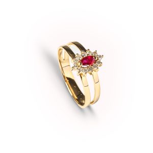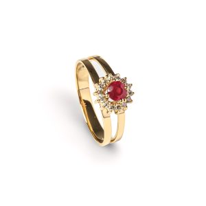 Anel Ouro Amarelo com Rubi e Diamantes