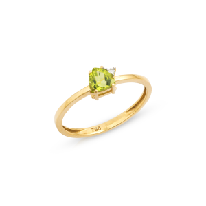 Anel ouro amarelo com Peridoto e diamante