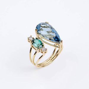 Anel Ouro Branco Com Ametista E Safira Rosa