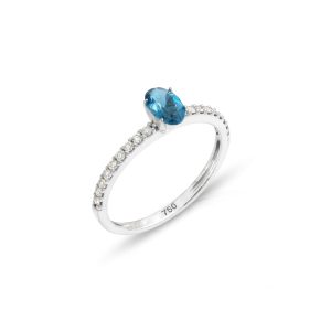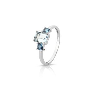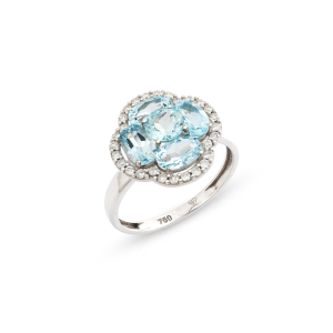 Anel Ouro Branco Com Quartzo, Safiras E Diamantes