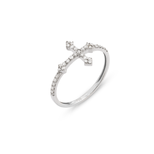 Anel Ouro Branco Com Diamantes E Pérola Branca