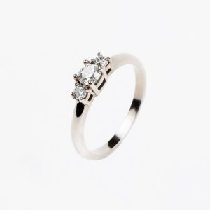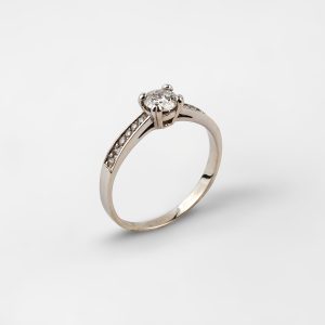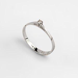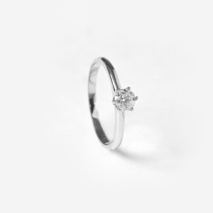 Anel Solitário Ouro Branco Com 30 Pontos De Diamante