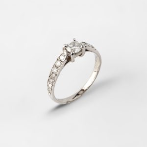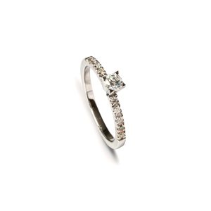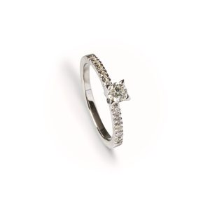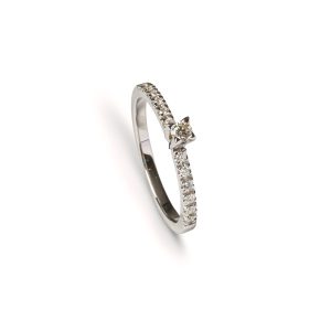 Anel Solitário Ouro Branco Com 28 Pontos De Diamante