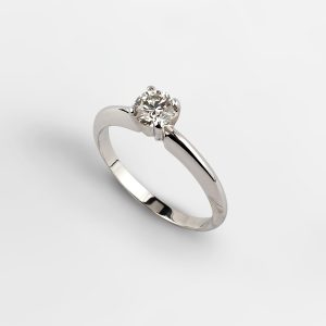 Anel Solitário Ouro Branco Com 50 Pontos De Diamante