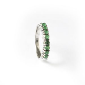 Meia Aliança ouro branco com esmeraldas