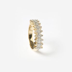 Meia Aliança ouro amarelo com diamantes