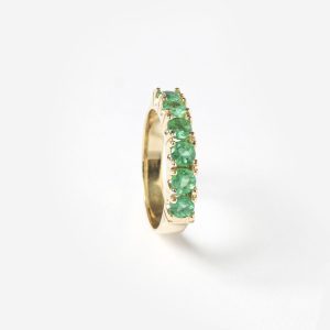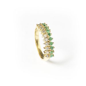 Meia Aliança ouro amarelo com esmeraldas