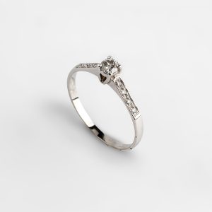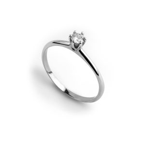 Anel Solitário Ouro Branco Com 15 Pontos De Diamante