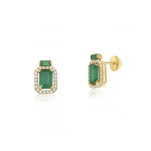 Brinco ouro amarelo com ágata verde e diamantes