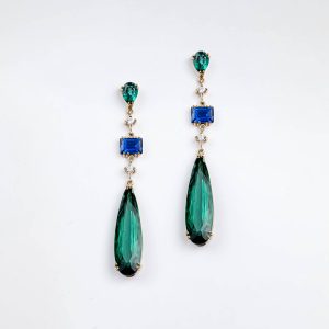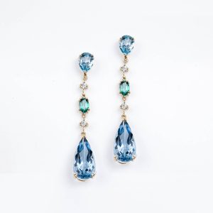 Brinco Ouro Amarelo Com Topázio E Safira