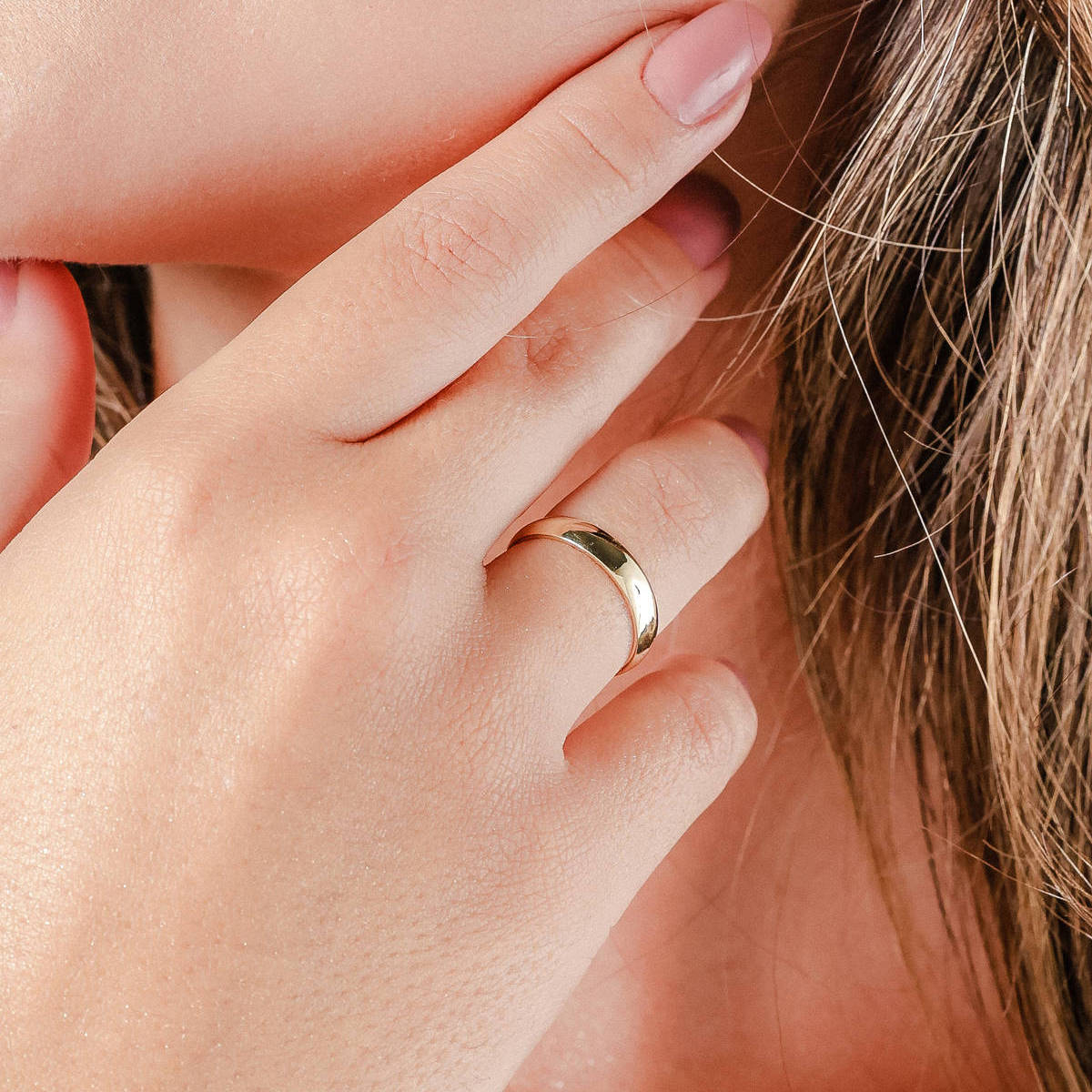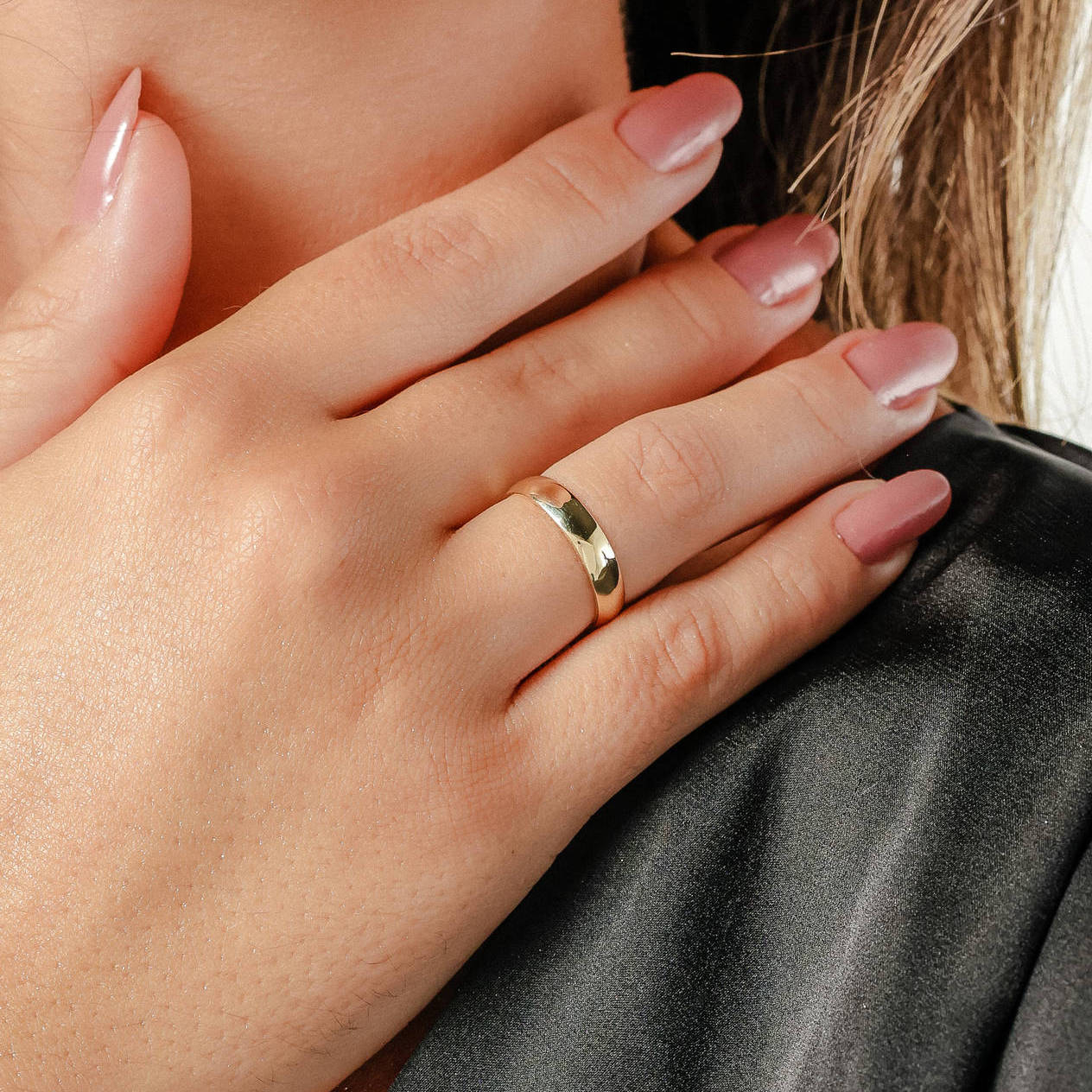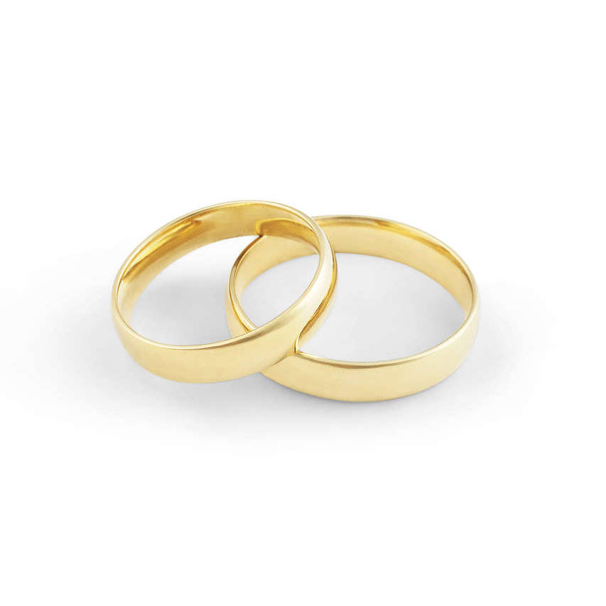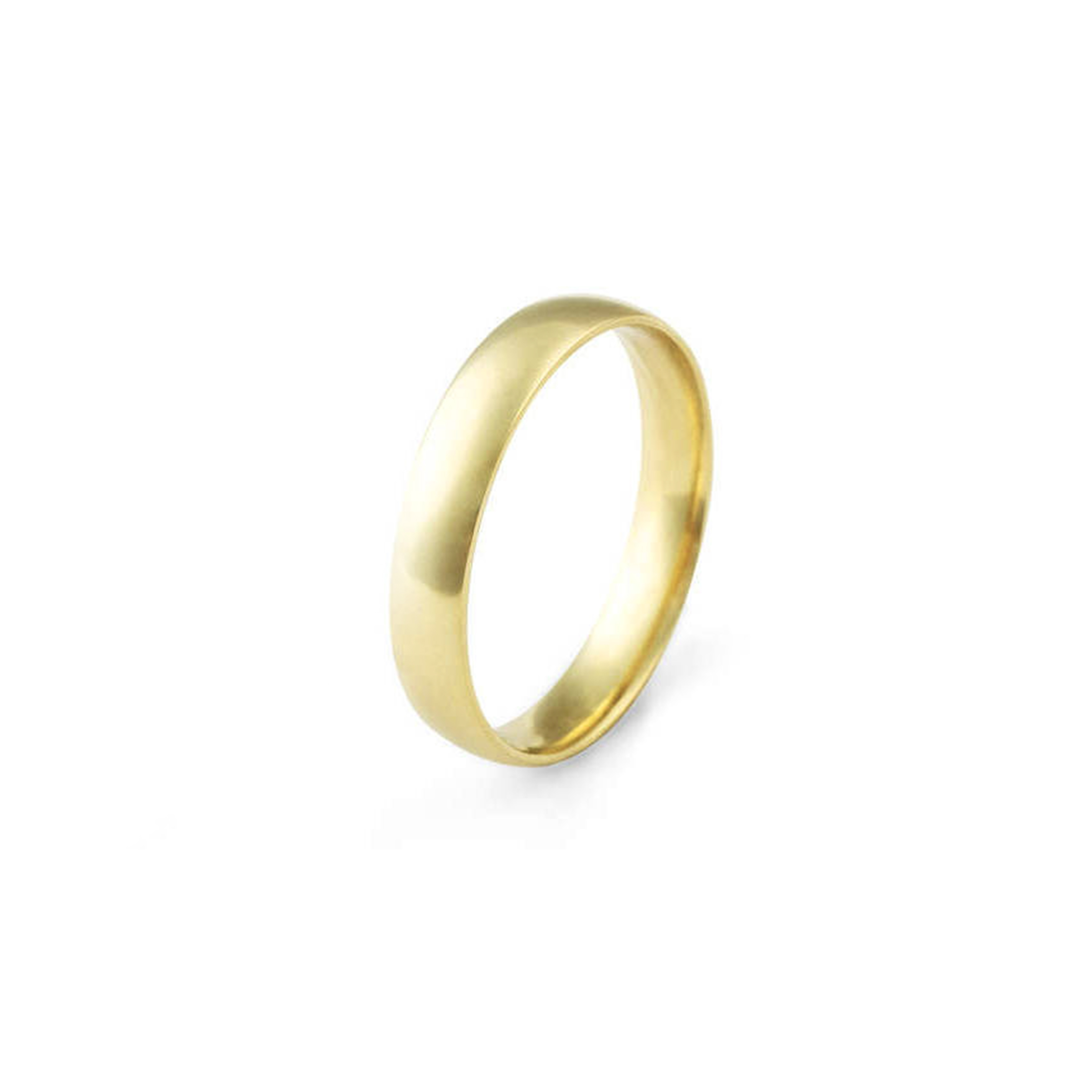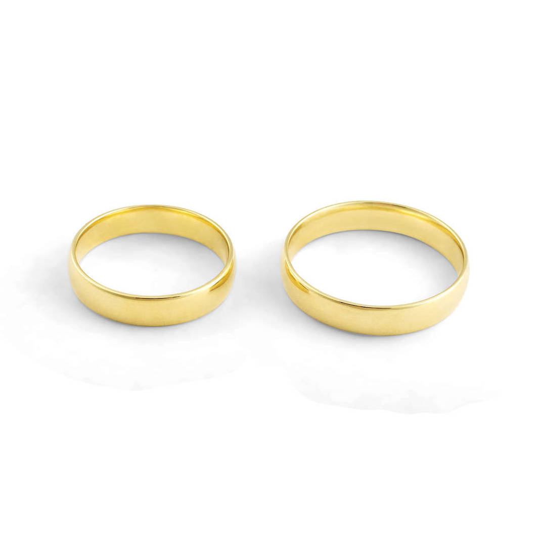 Aliança ouro amarelo anatômica, abaulada por fora e reta por dentro com largura de 4 milímetros