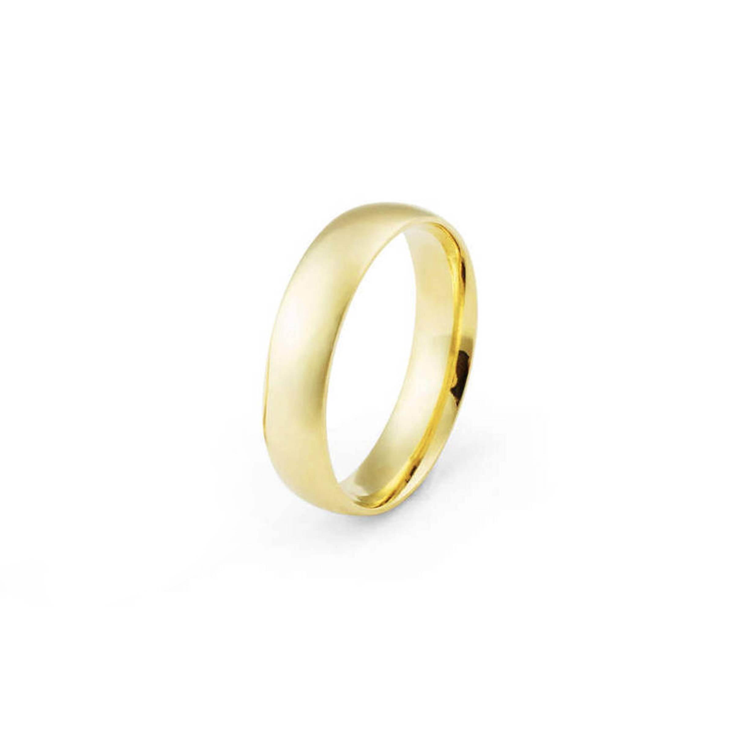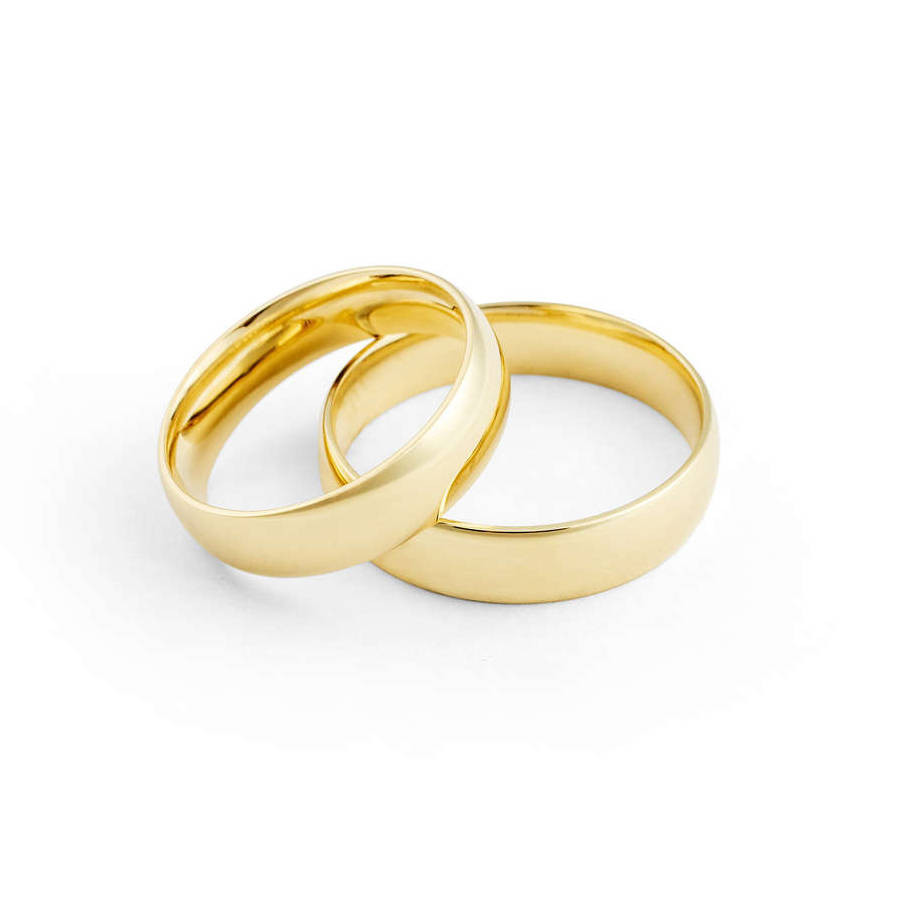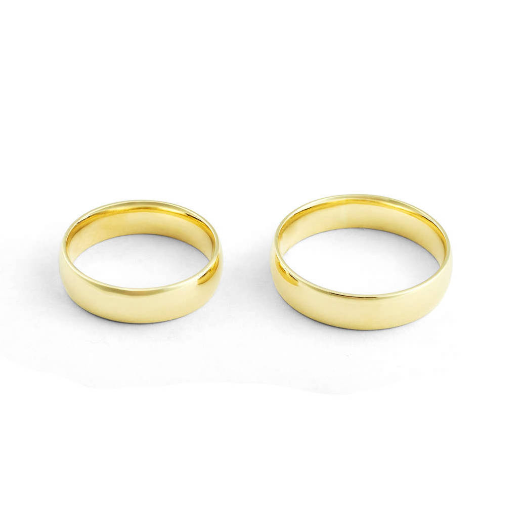 Aliança ouro amarelo anatômica, abaulada por fora e reta por dentro com largura de 5 milímetros