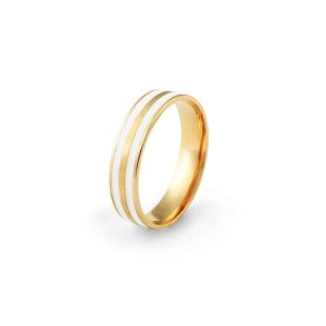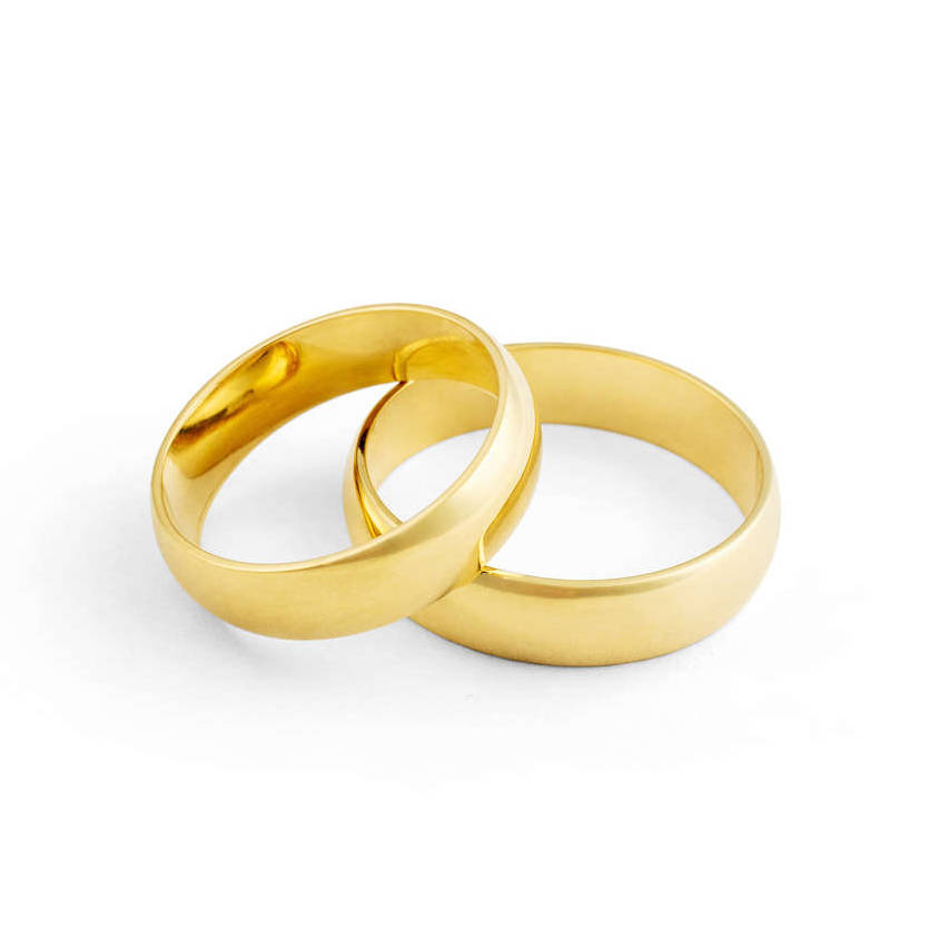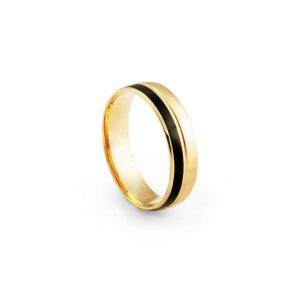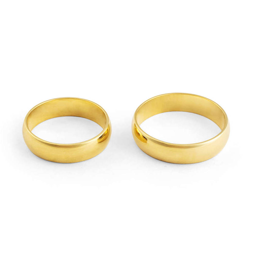 Aliança ouro amarelo tradicional anatômica, abaulada por fora e por dentro com largura de 5 milímetros