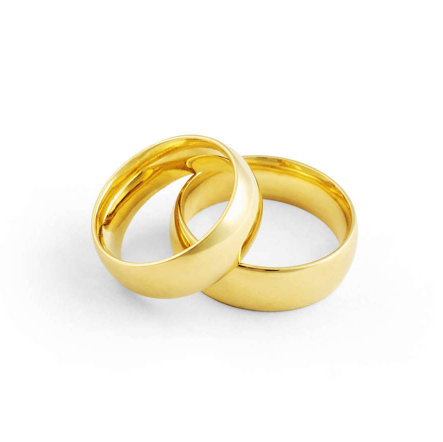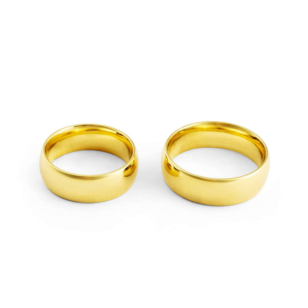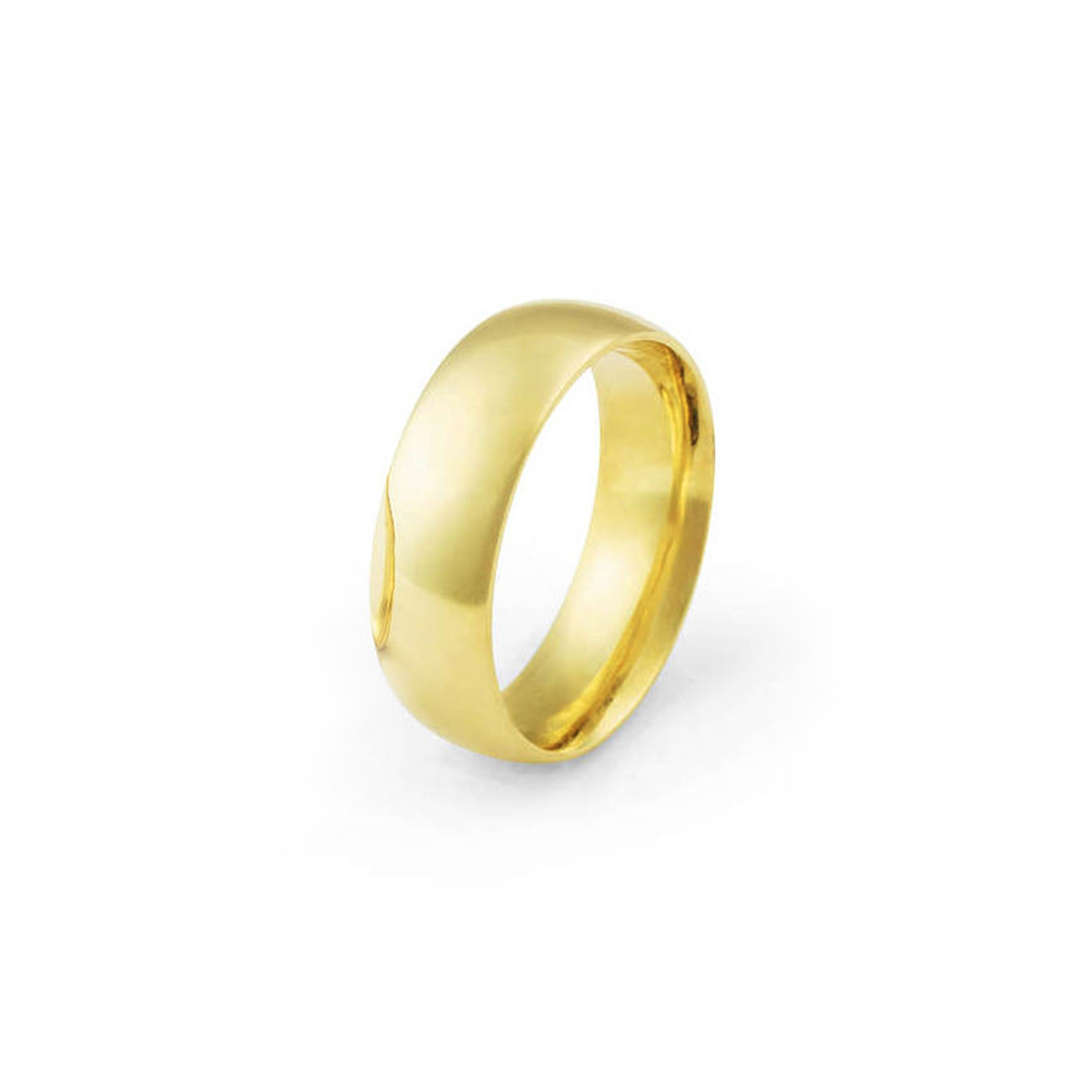 Aliança ouro amarelo anatômica, abaulada por fora e reta por dentro com largura de 7 milímetros