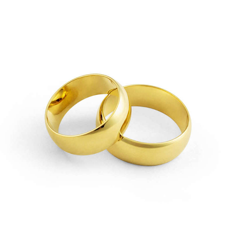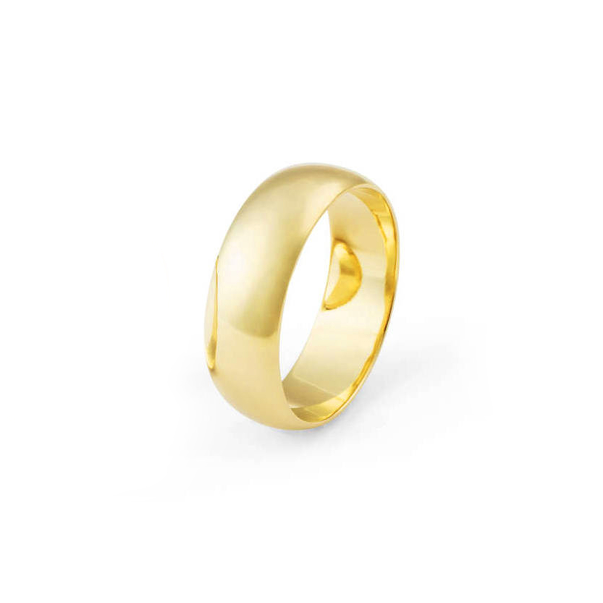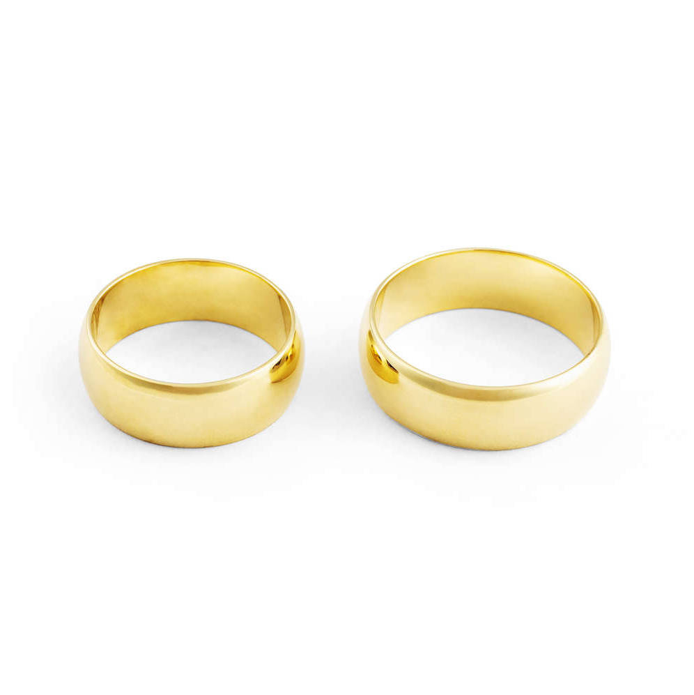 Aliança ouro amarelo tradicional anatômica, abaulada por fora e por dentro com largura de 7 milímetros