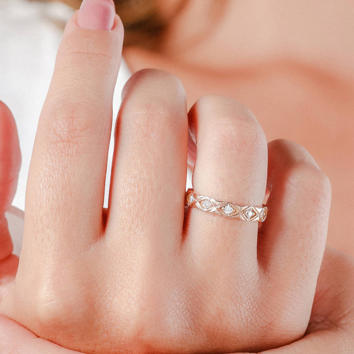 Aliança ouro rosé Capitonné abaulada com 4 milímetros de largura e diamantes de 3 pontos.