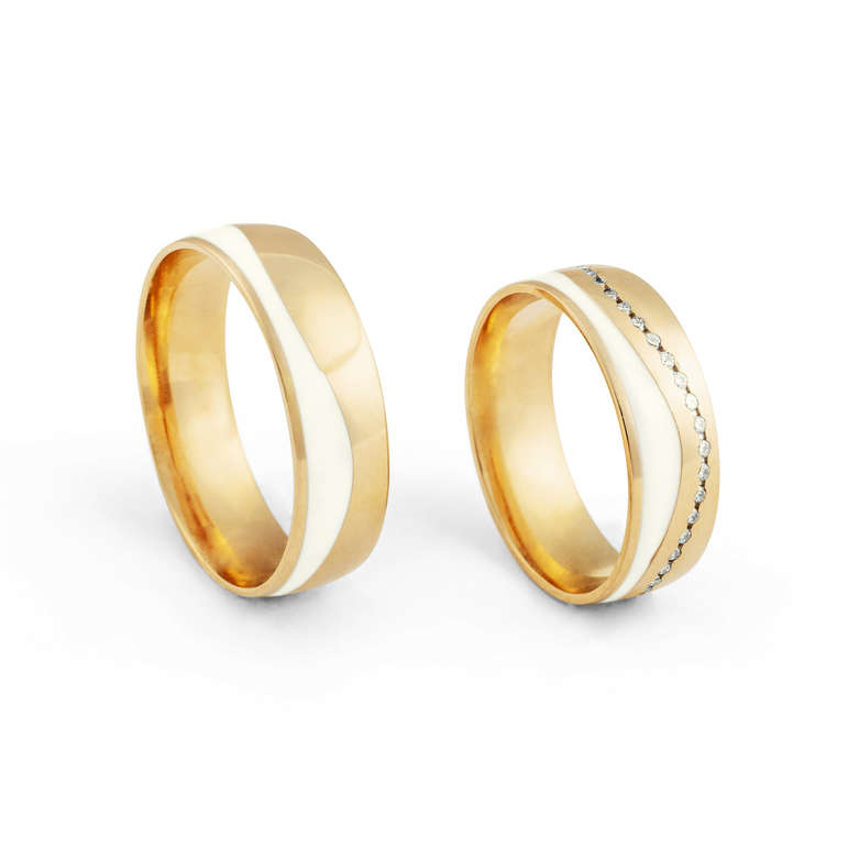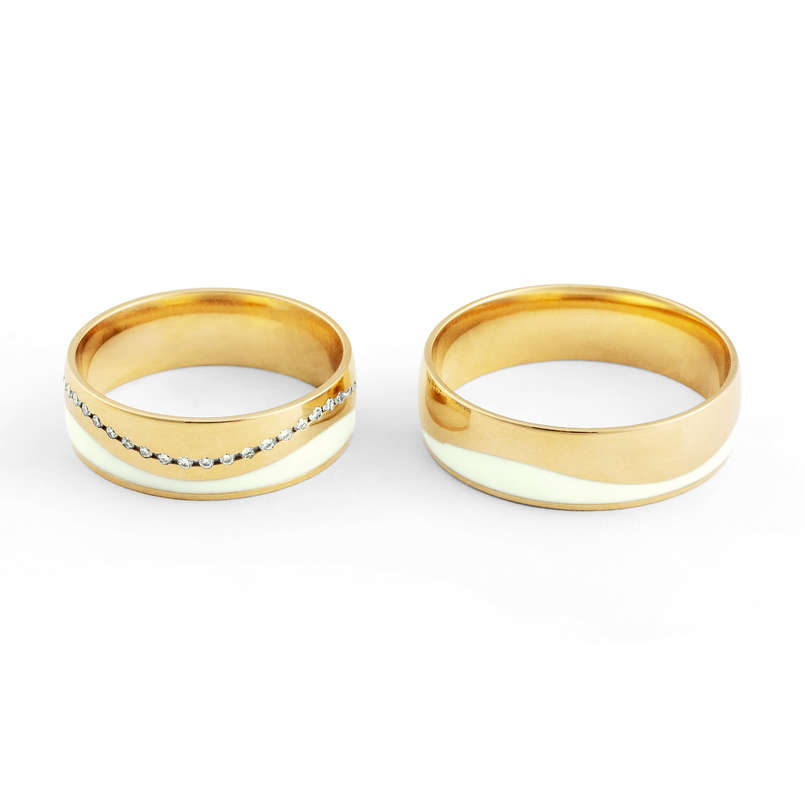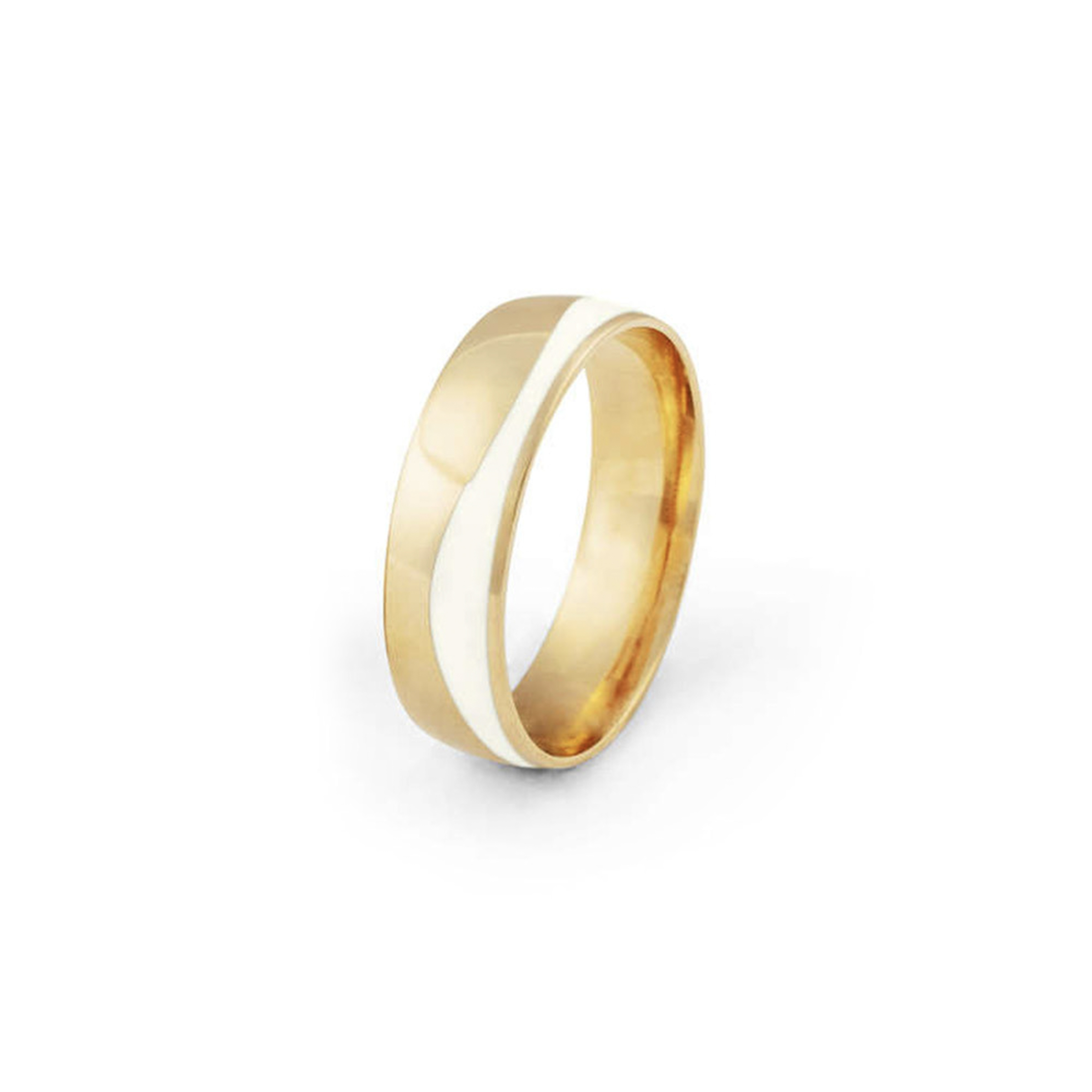 ALIANÇA OURO ROSÉ 18K COLEÇÃO SWAG COM 1 LISTRA BRANCA EM FORMATO ONDA ENTRE A ALIANÇA 5MM