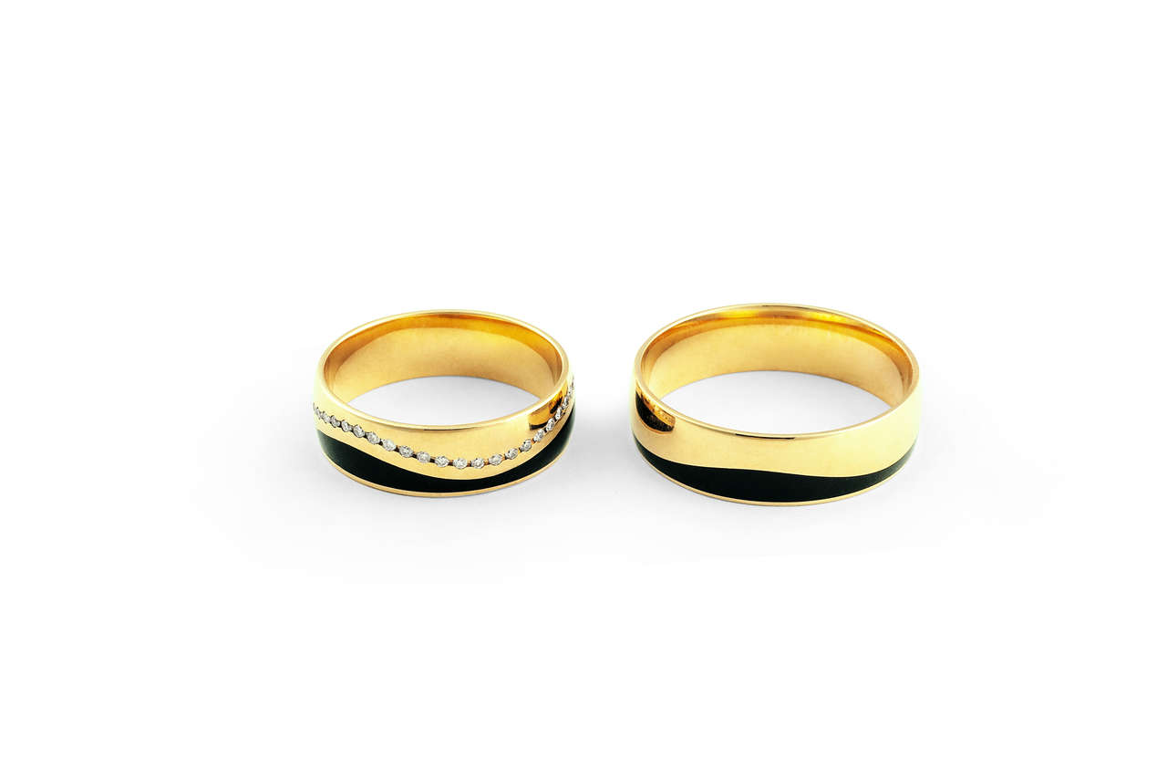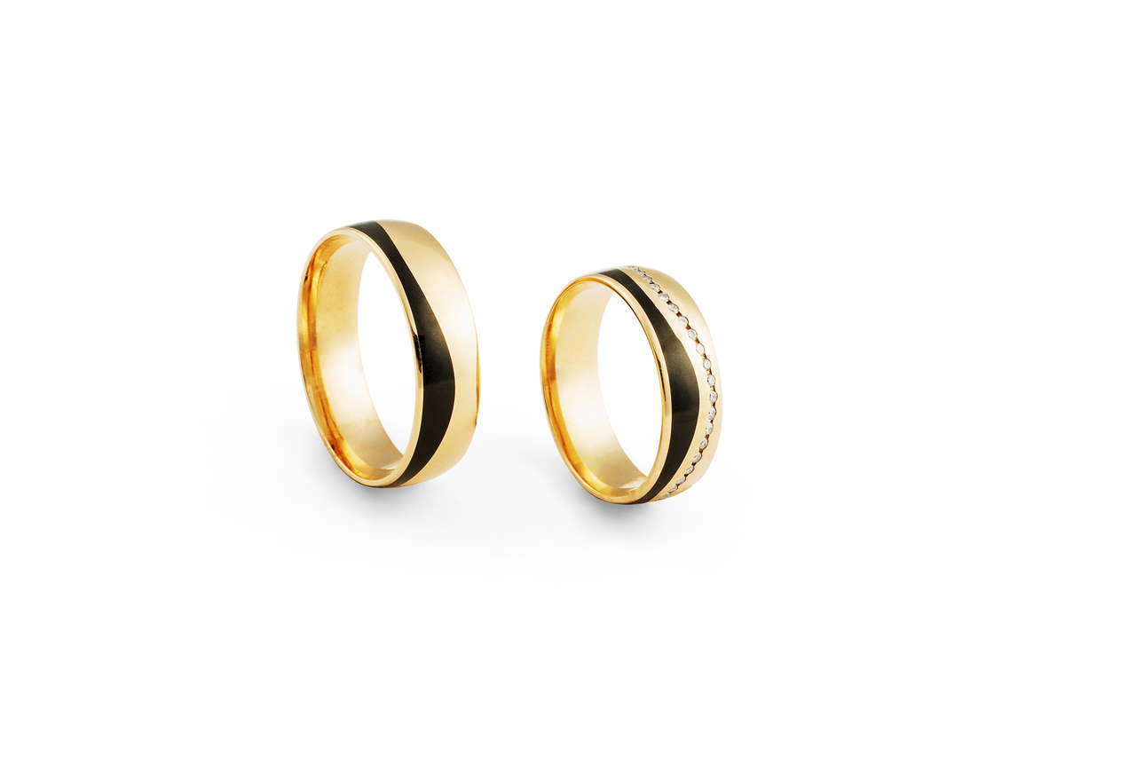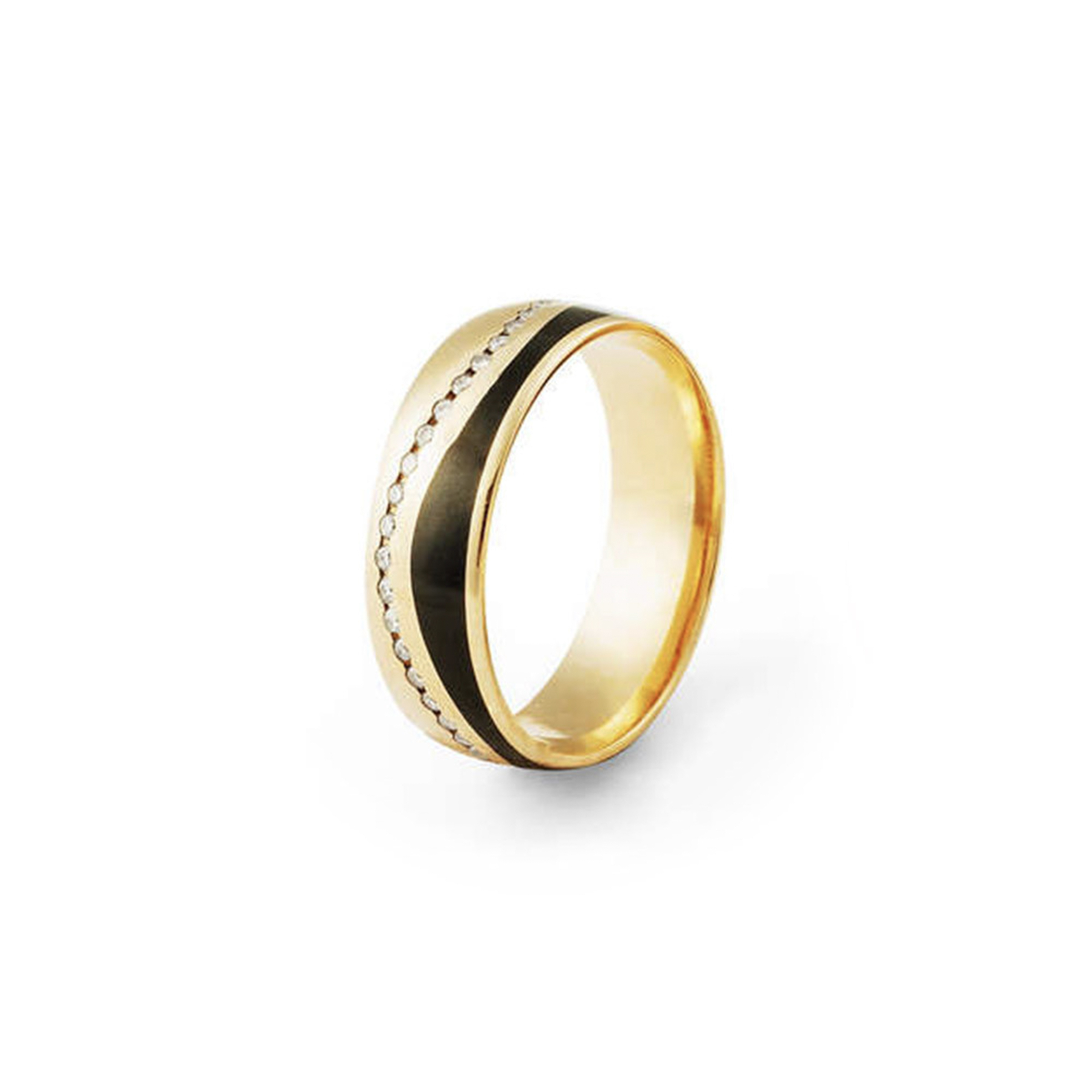 ALIANÇA OURO ROSÉ 18K COLEÇÃO SWAG COM 1 LISTRA PRETA EM FORMATO ONDA PELA ALIANÇA CRAVEJADO DE BRILHANTES EM VOLTA 6MM