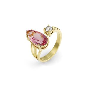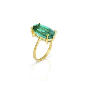 Anel ouro amarelo 18K com ágata verde e diamantes