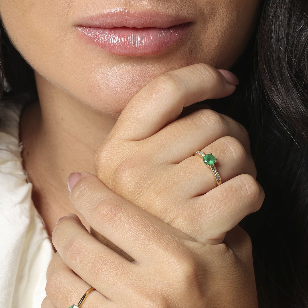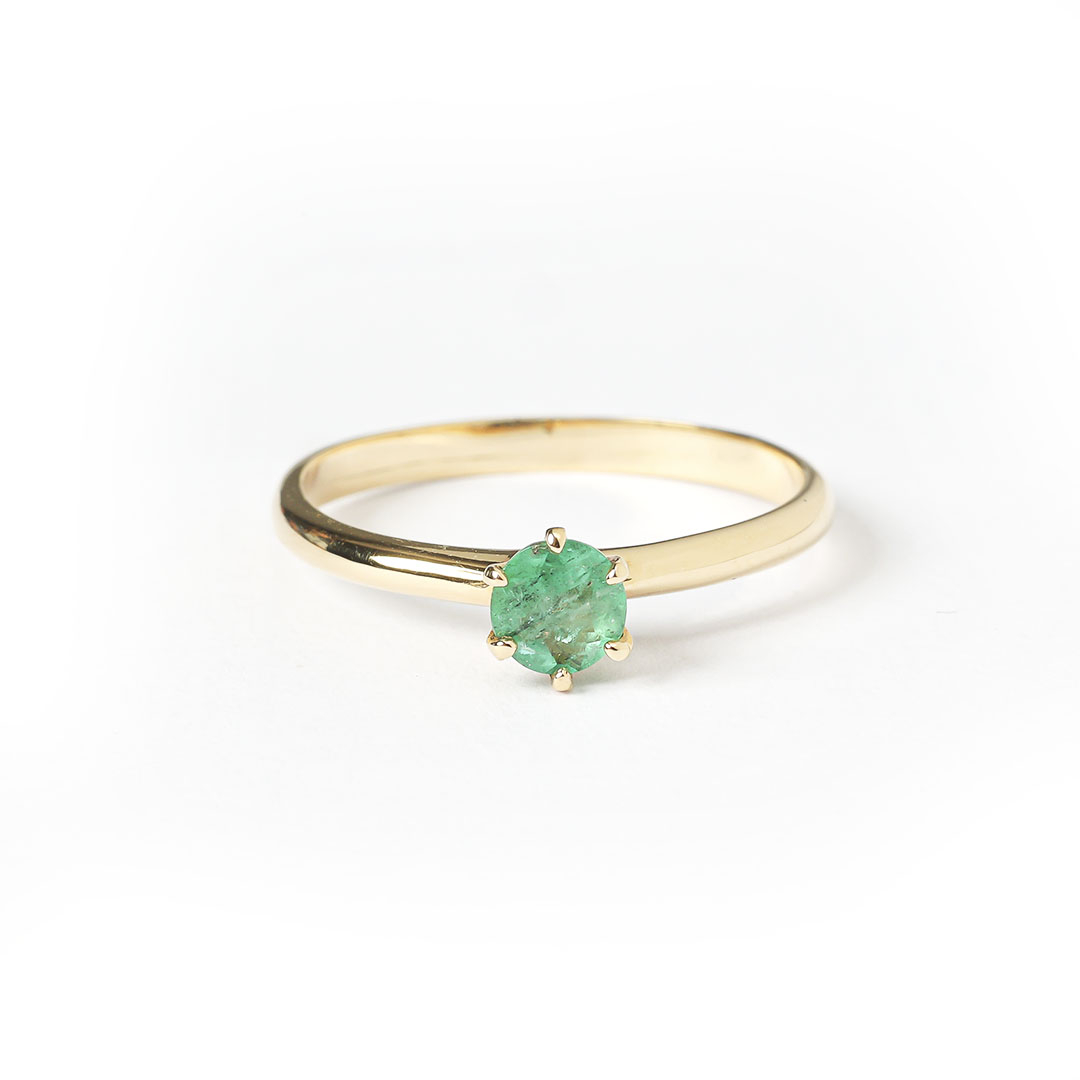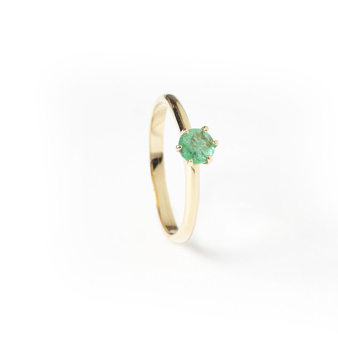 Anel de ouro amarelo 18K com esmeralda.