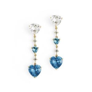 ANEL OURO AMARELO 18K ABERTO COM 2 TOPÁZIOS EM FORMATO GOTA PEQUENOS VERDE INVERTIDOS E UMA PEDRA EM SAFIRA BRANCO