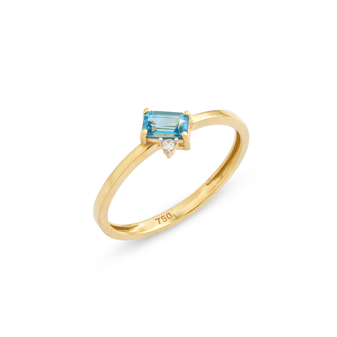 Anel ouro amarelo 18K com topázio Swiss Blue e diamante
