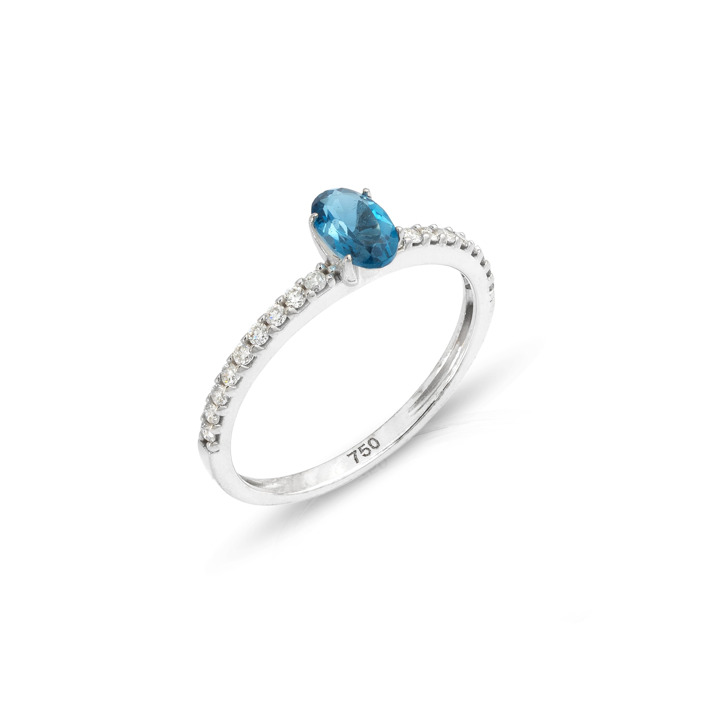 Anel de ouro branco 18K com diamantes e topázio London Blue.