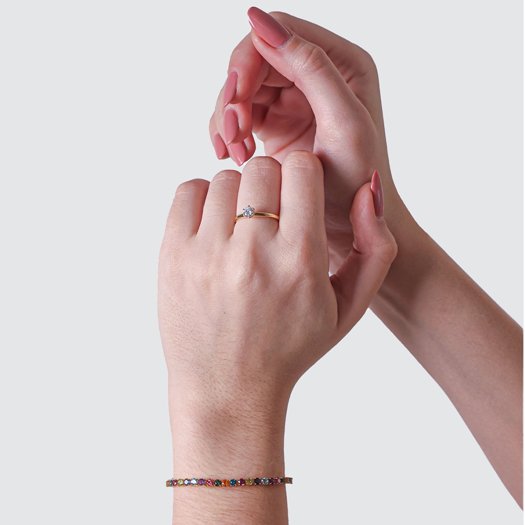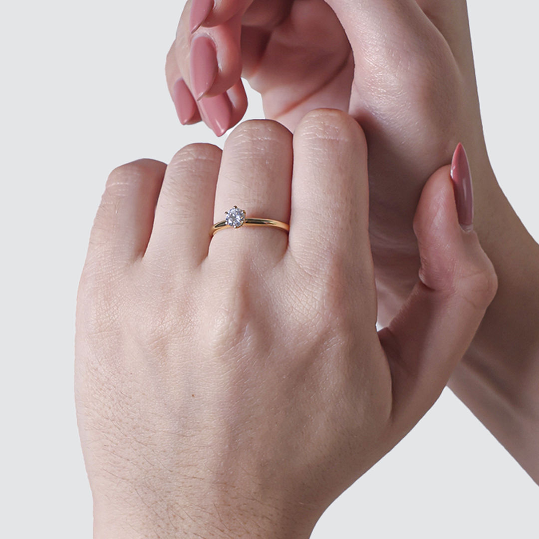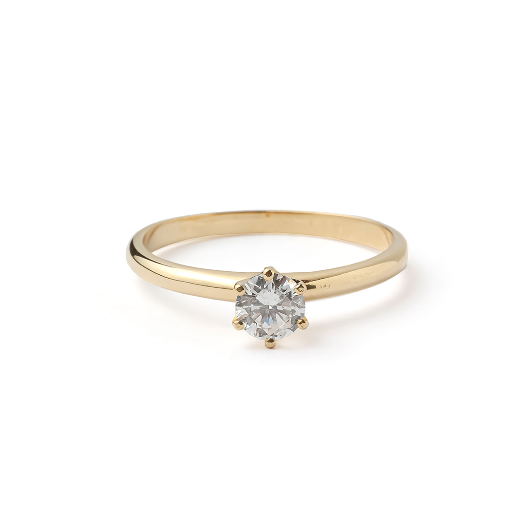 Anel solitário ouro amarelo 18K com 40 pontos de diamante.