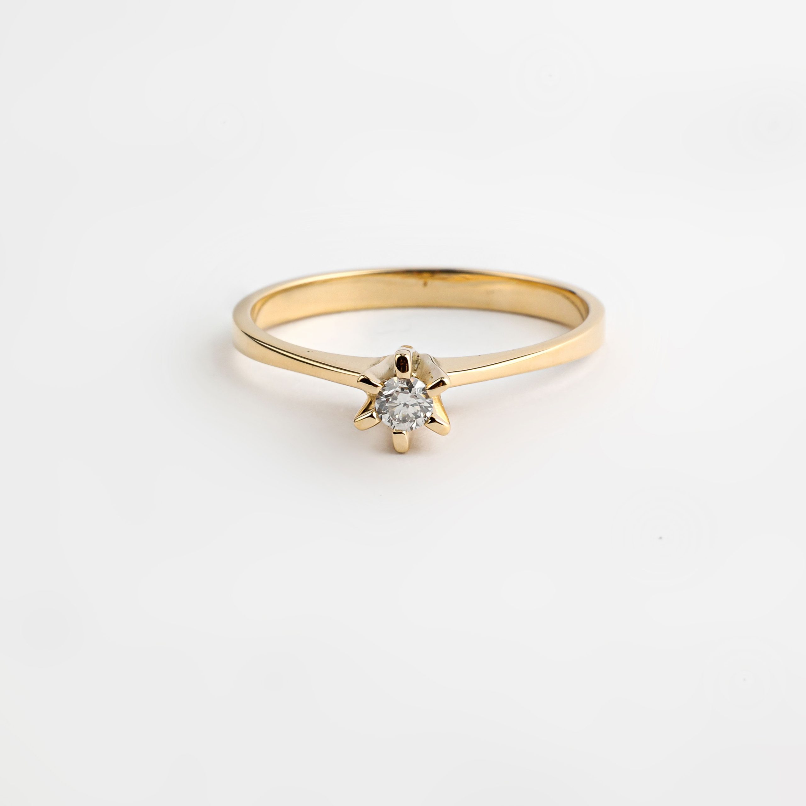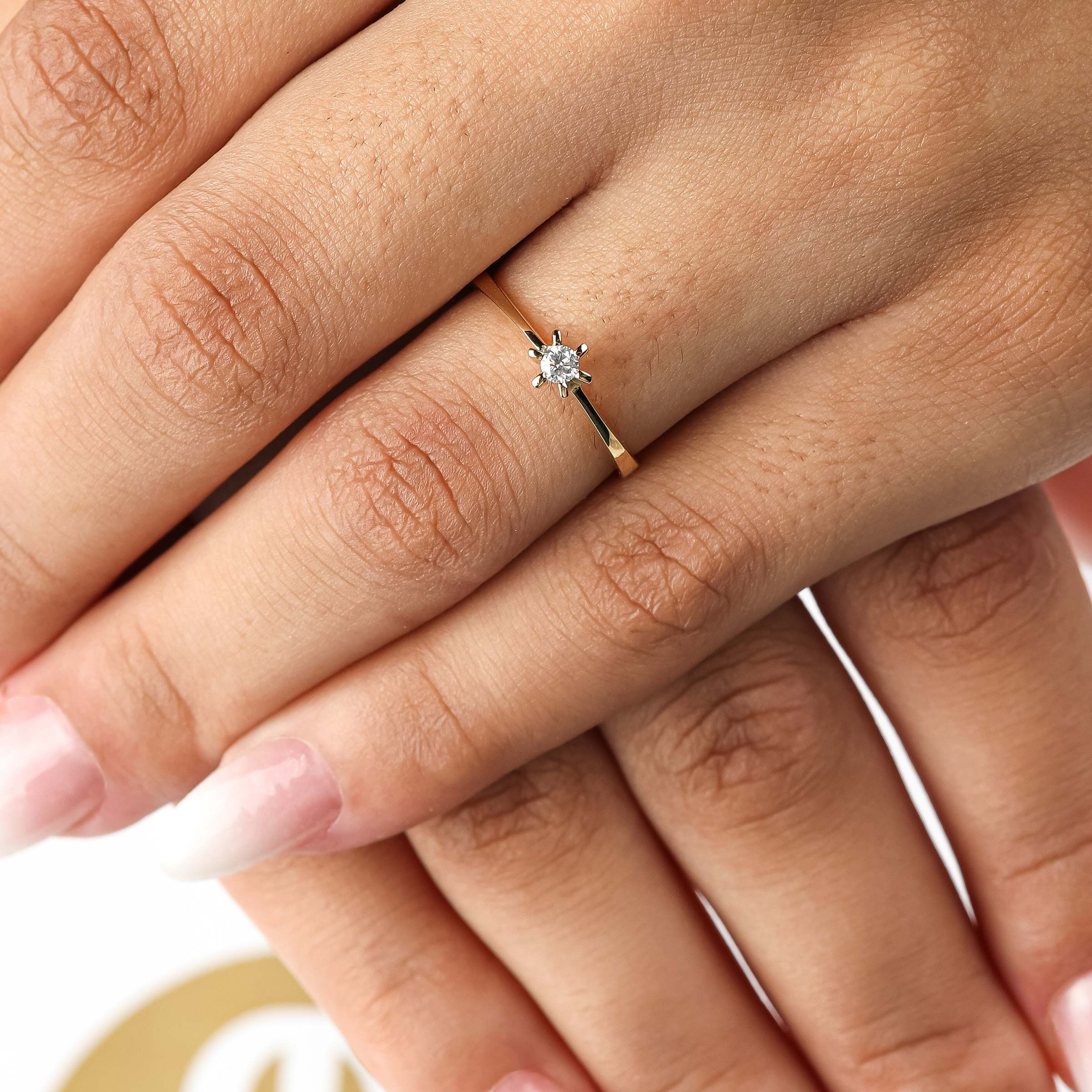 Anel solitário ouro amarelo 18K 1 diamante de 8 pontos.