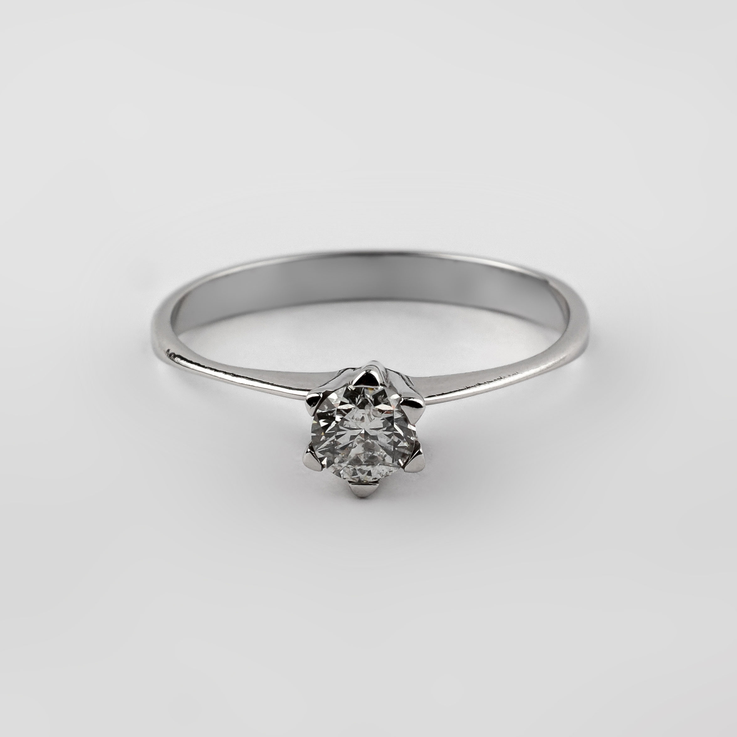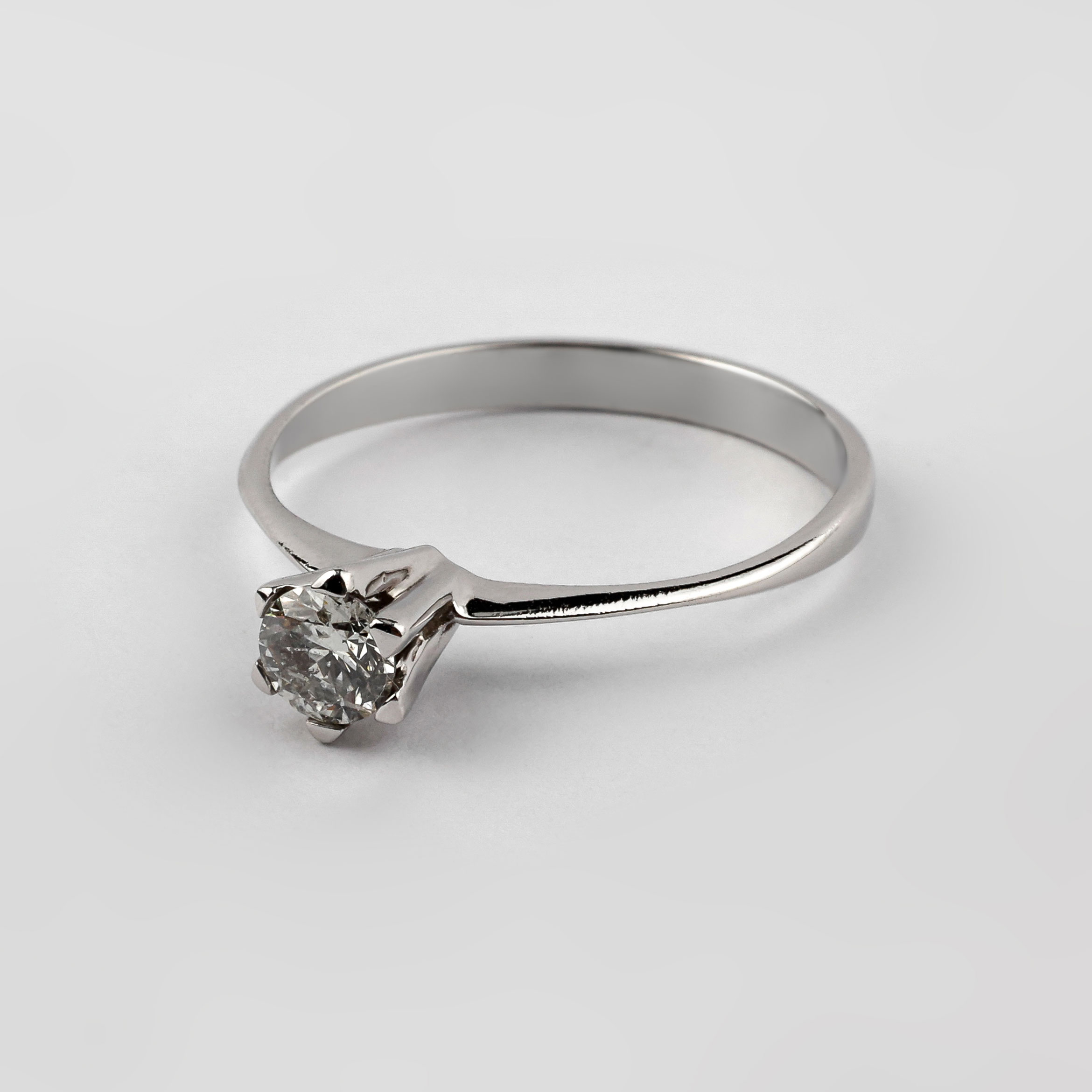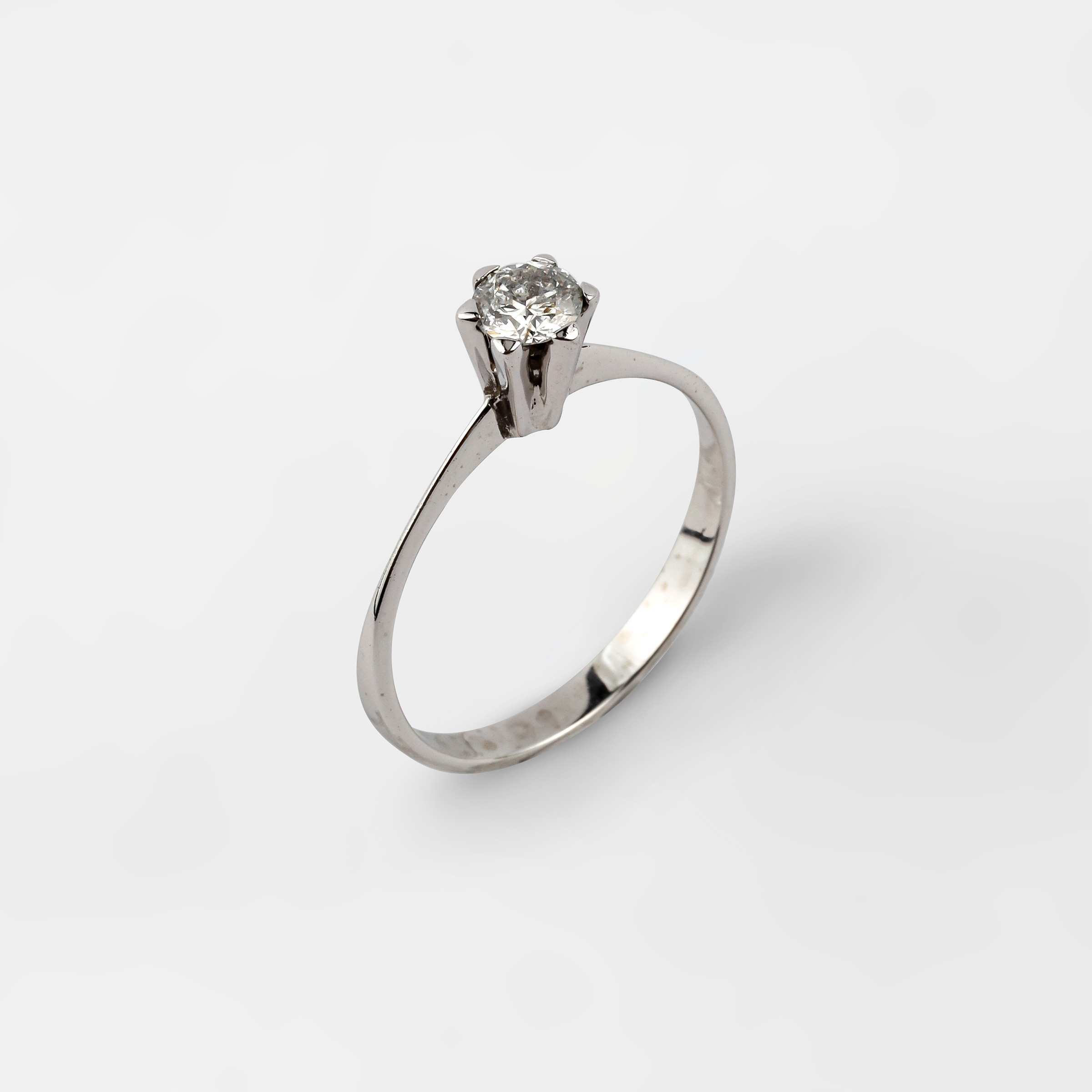 Anel solitário ouro branco 18K com 1 diamante de 30 pontos.
