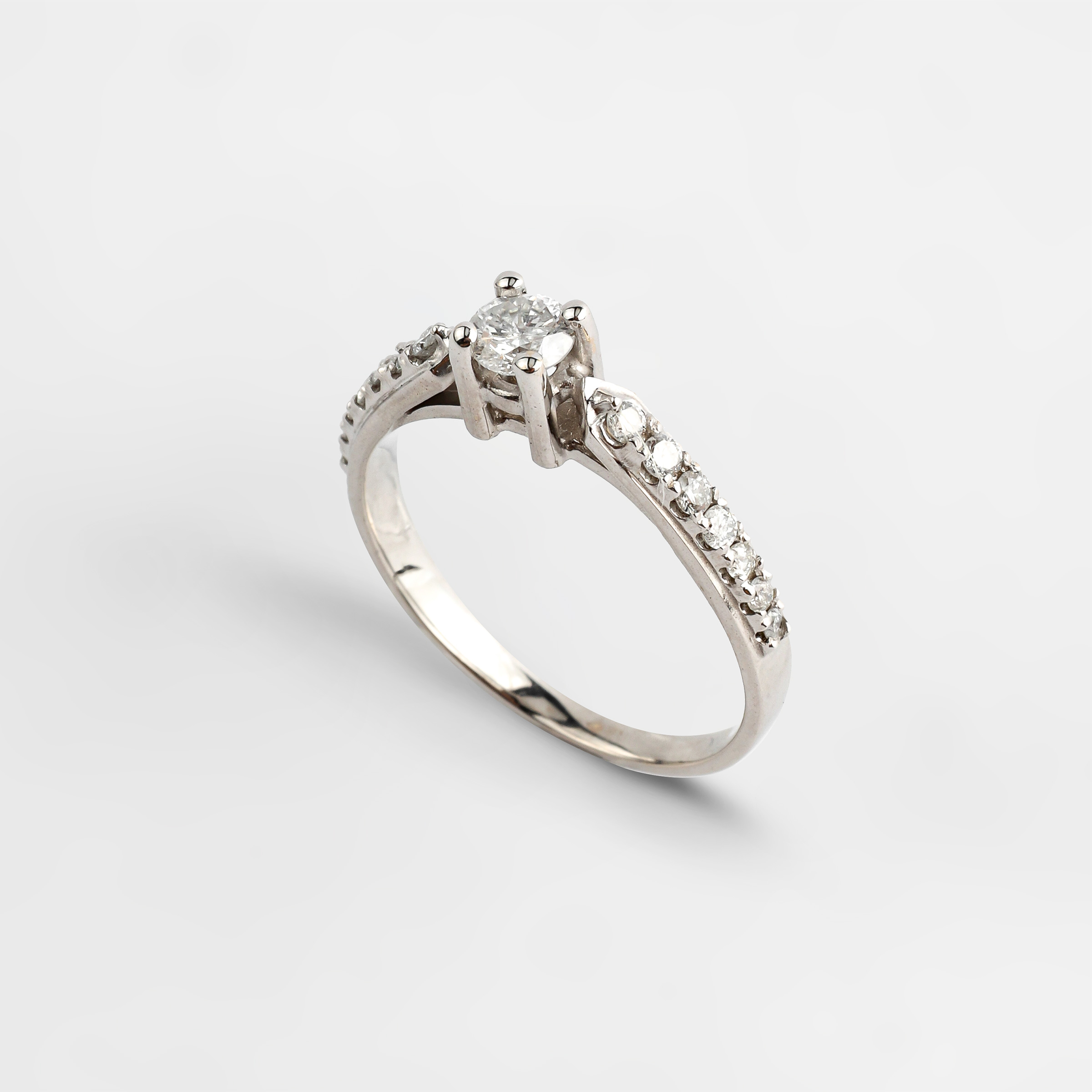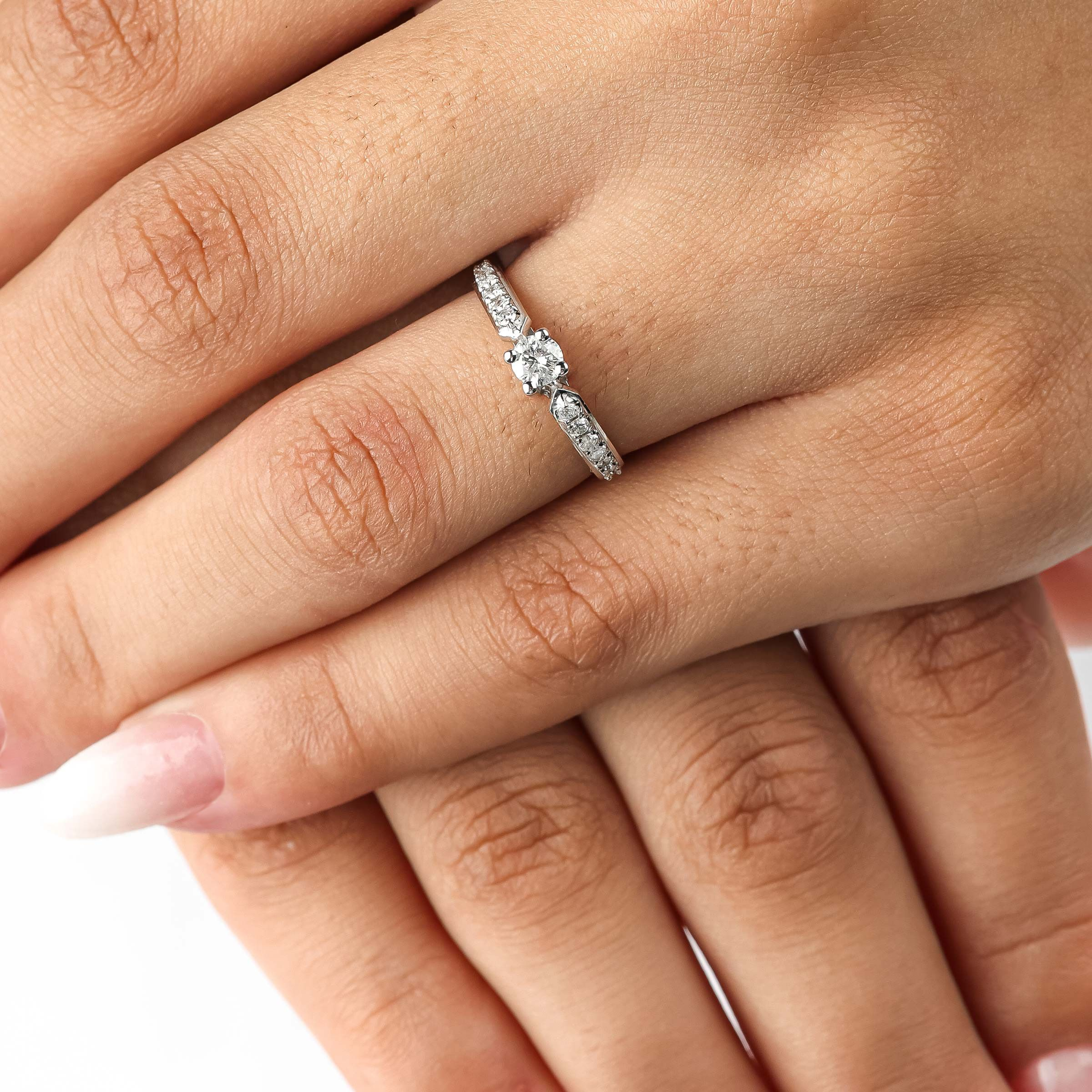 Anel solitário ouro branco 18K com 43 pontos de diamantes.