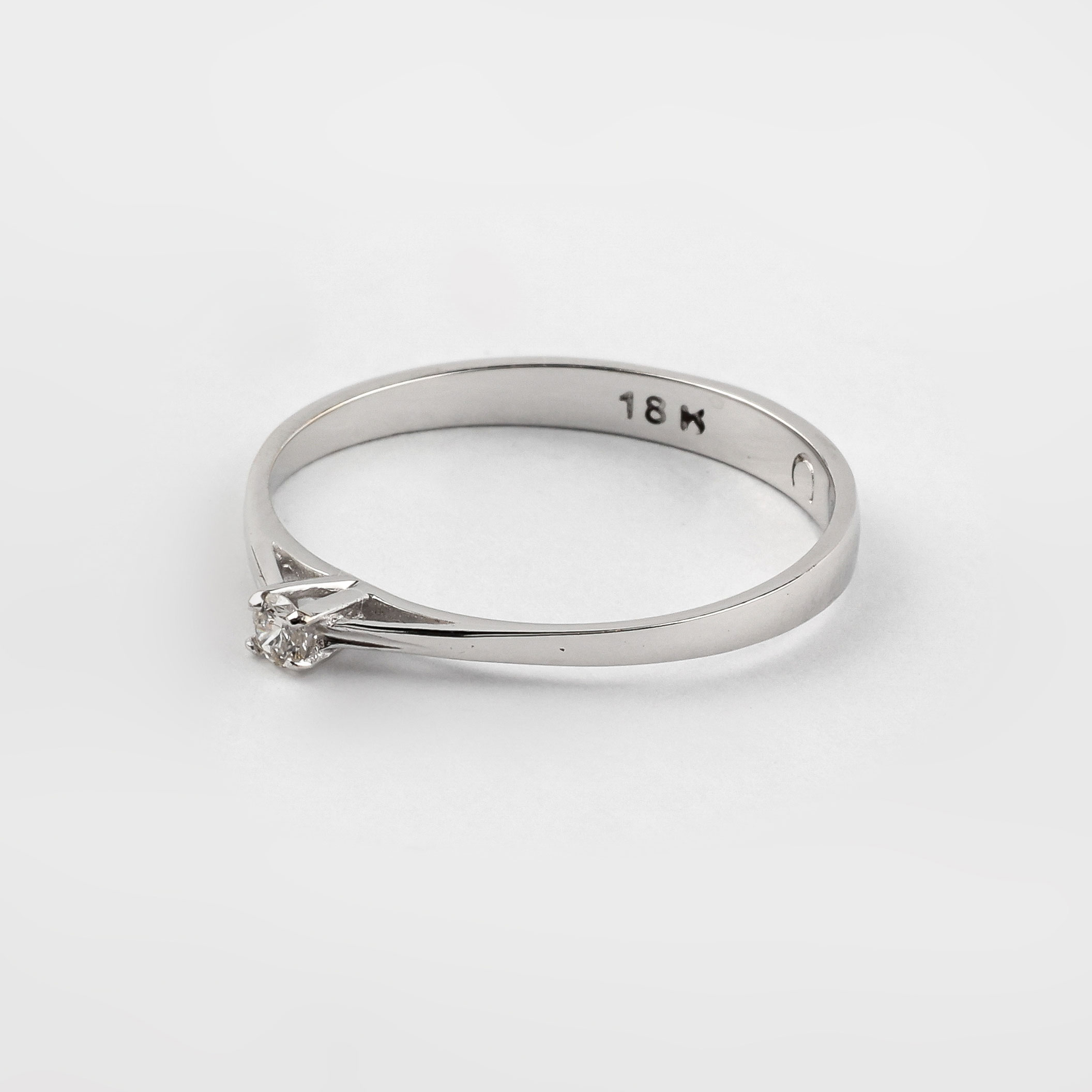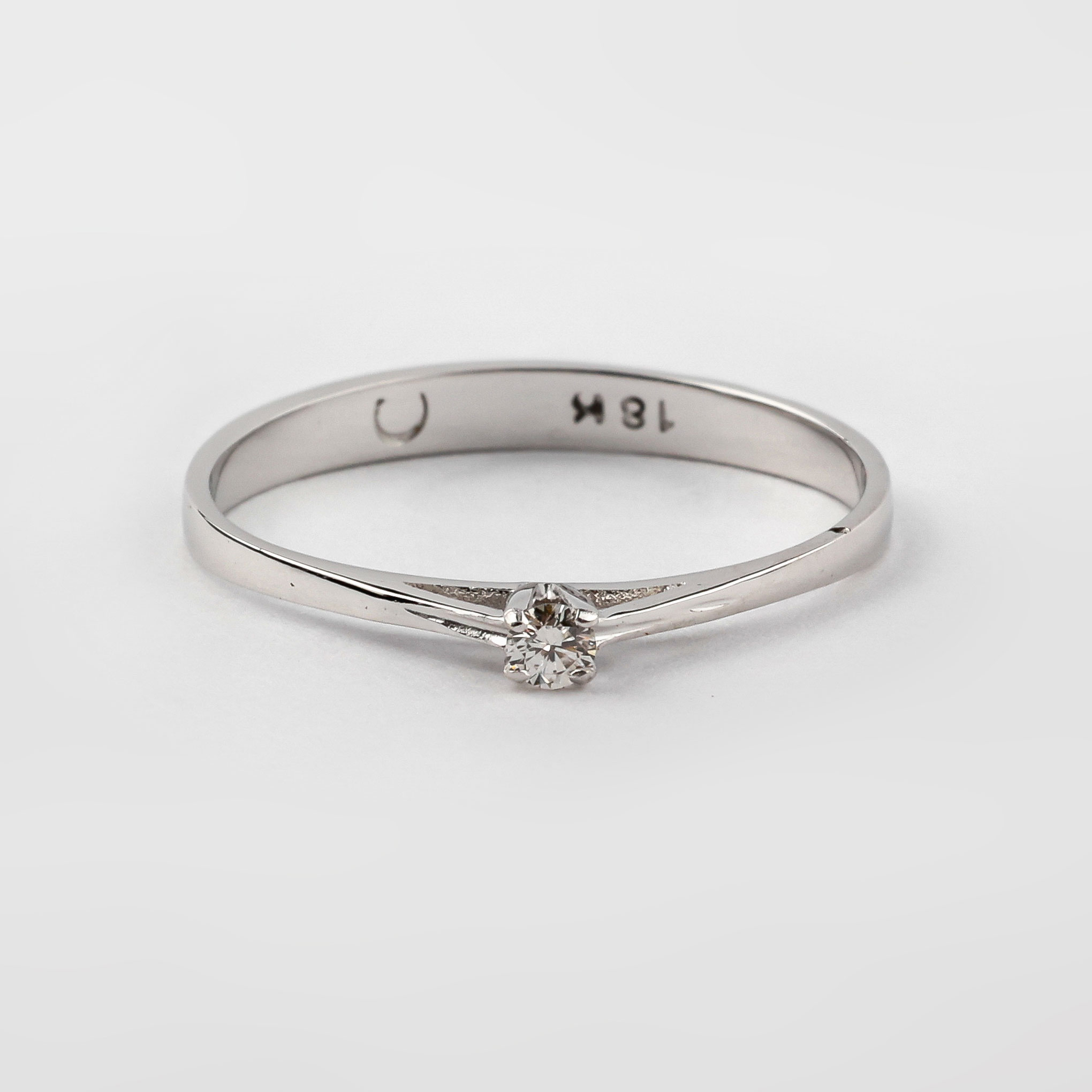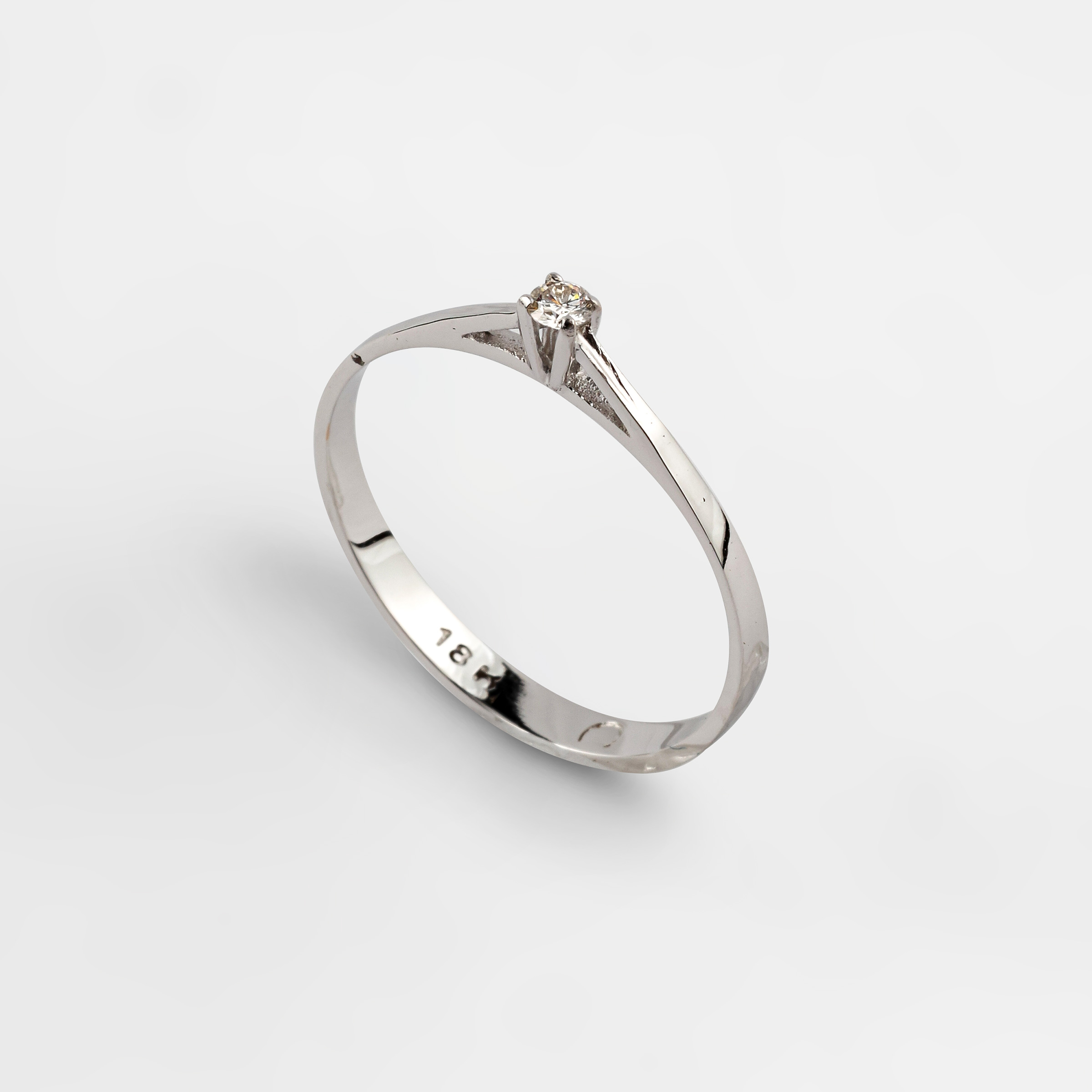 Anel solitário ouro branco 18K com 1 diamante de 5 pontos.