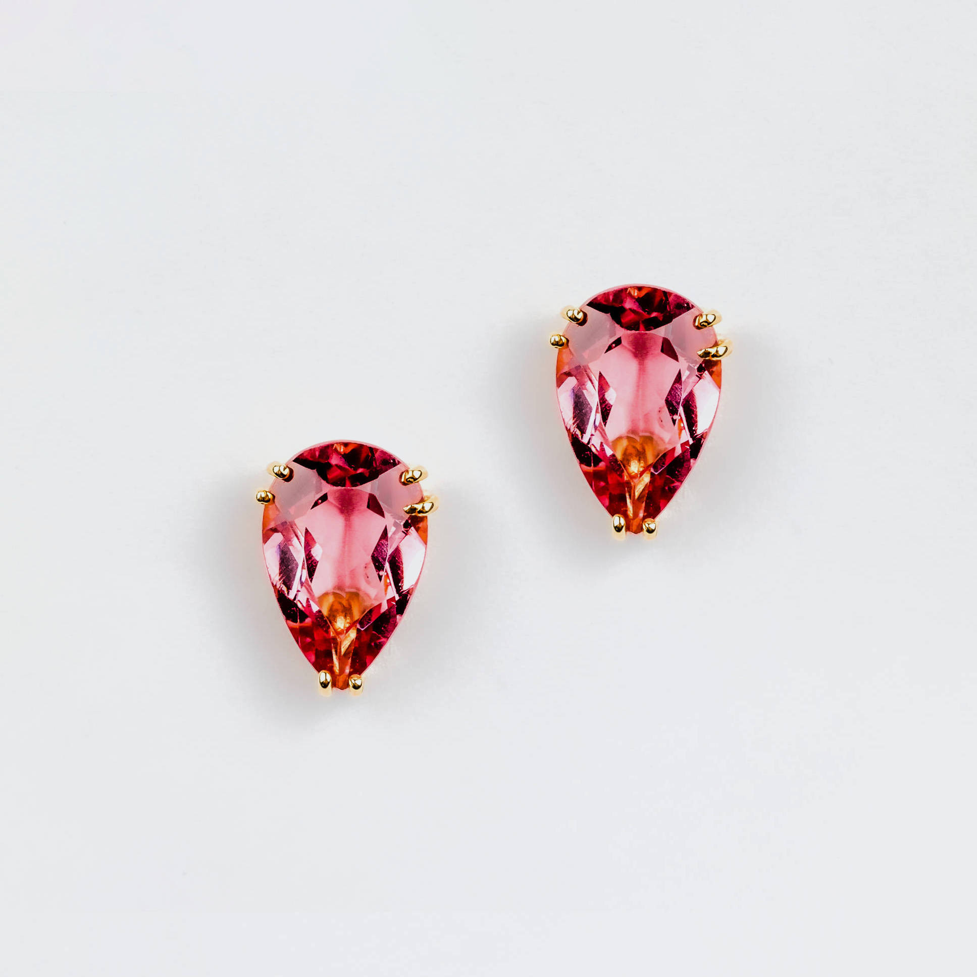 Brinco ouro amarelo com um topázio rosa lapidação gota.