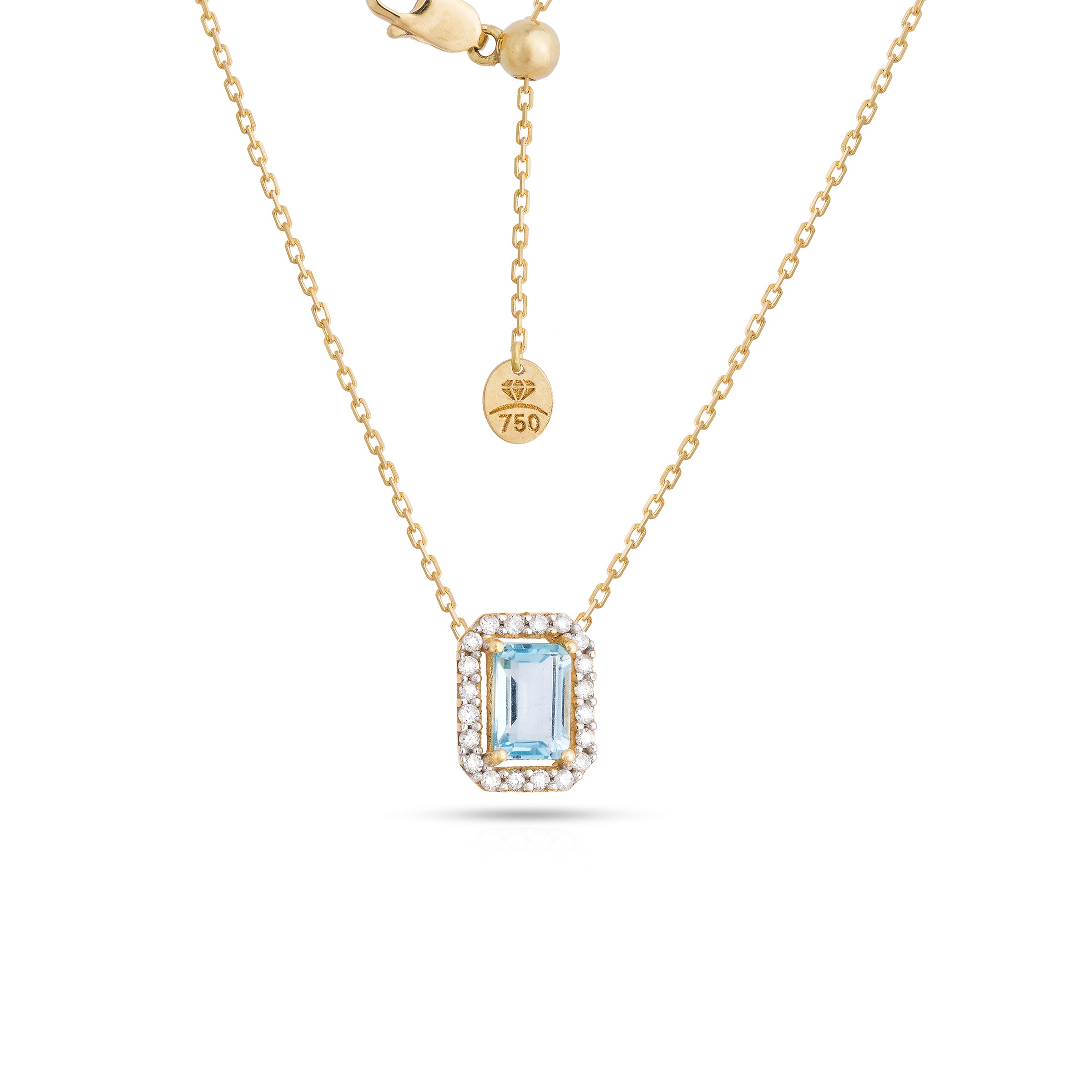 Colar ouro amarelo 18K com diamantes e topázio. Comprimento médio do colar: 45cm.