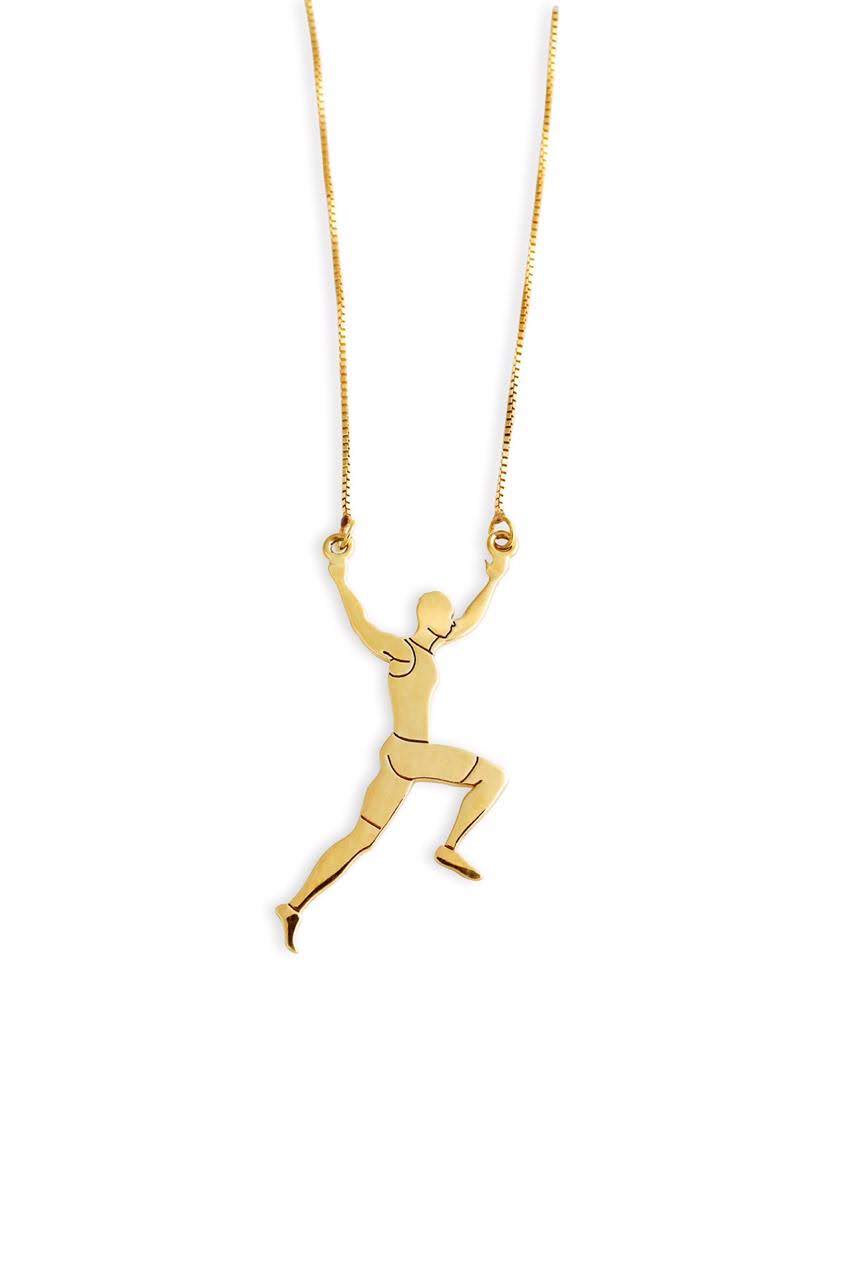 COLAR OURO AMARELO 18K FIO VENEZIANO COM PINGENTE FORMATO CORREDOR PERFIL RECORTADO