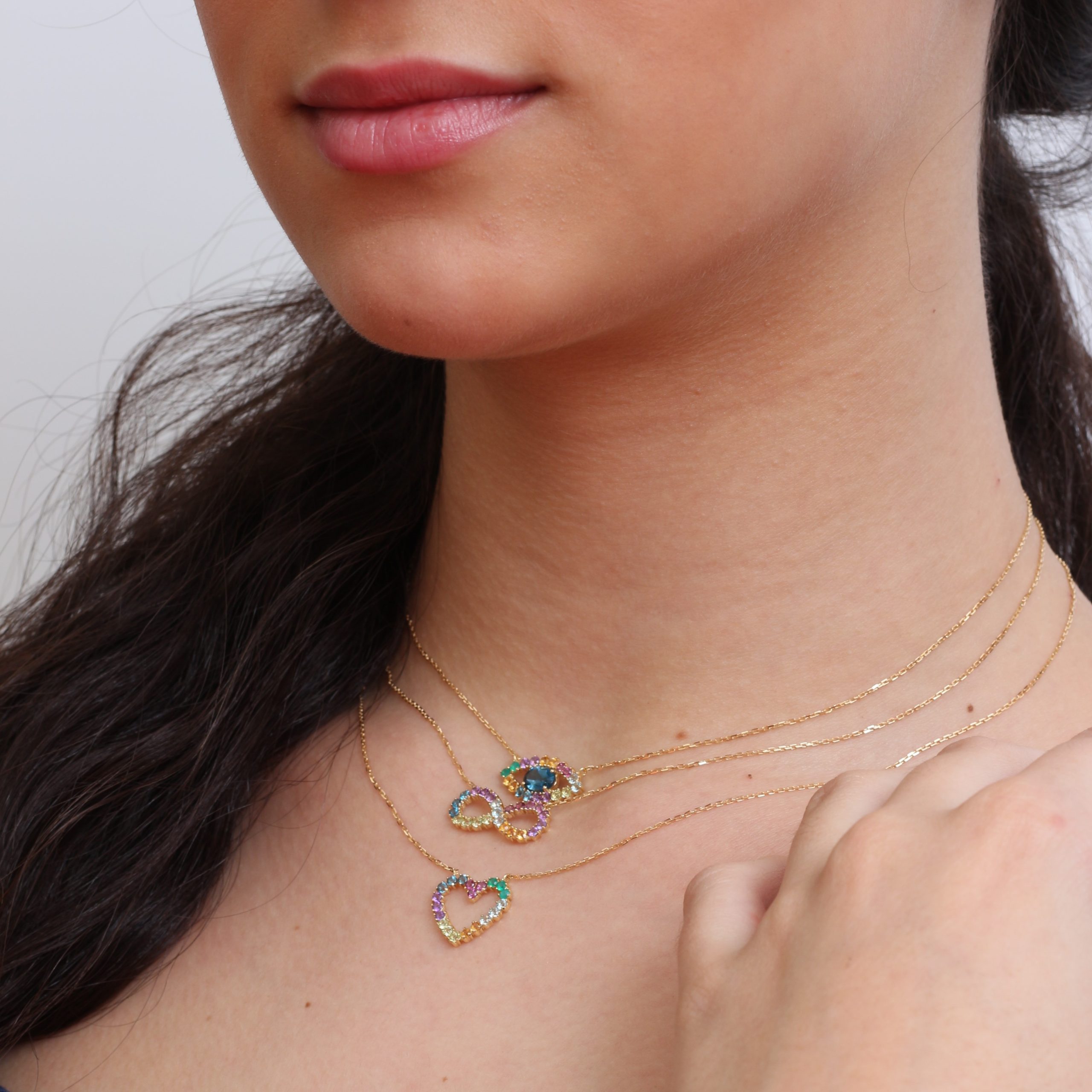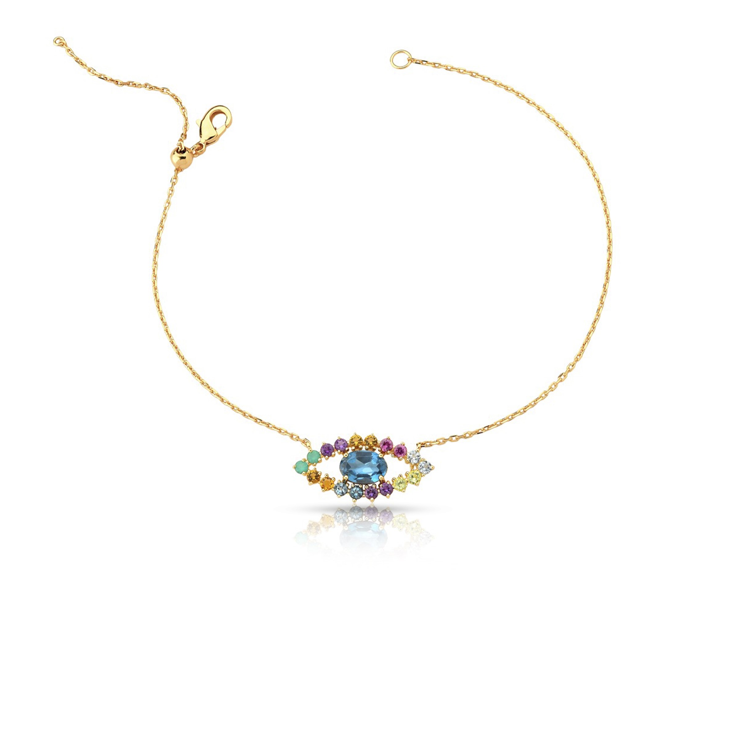 Colar de ouro amarelo 18K com topázio London Blue, topázio Swiss Blue, ametista, citrino, peridoto e ágata verde. Comprimento médio do colar: 45cm.