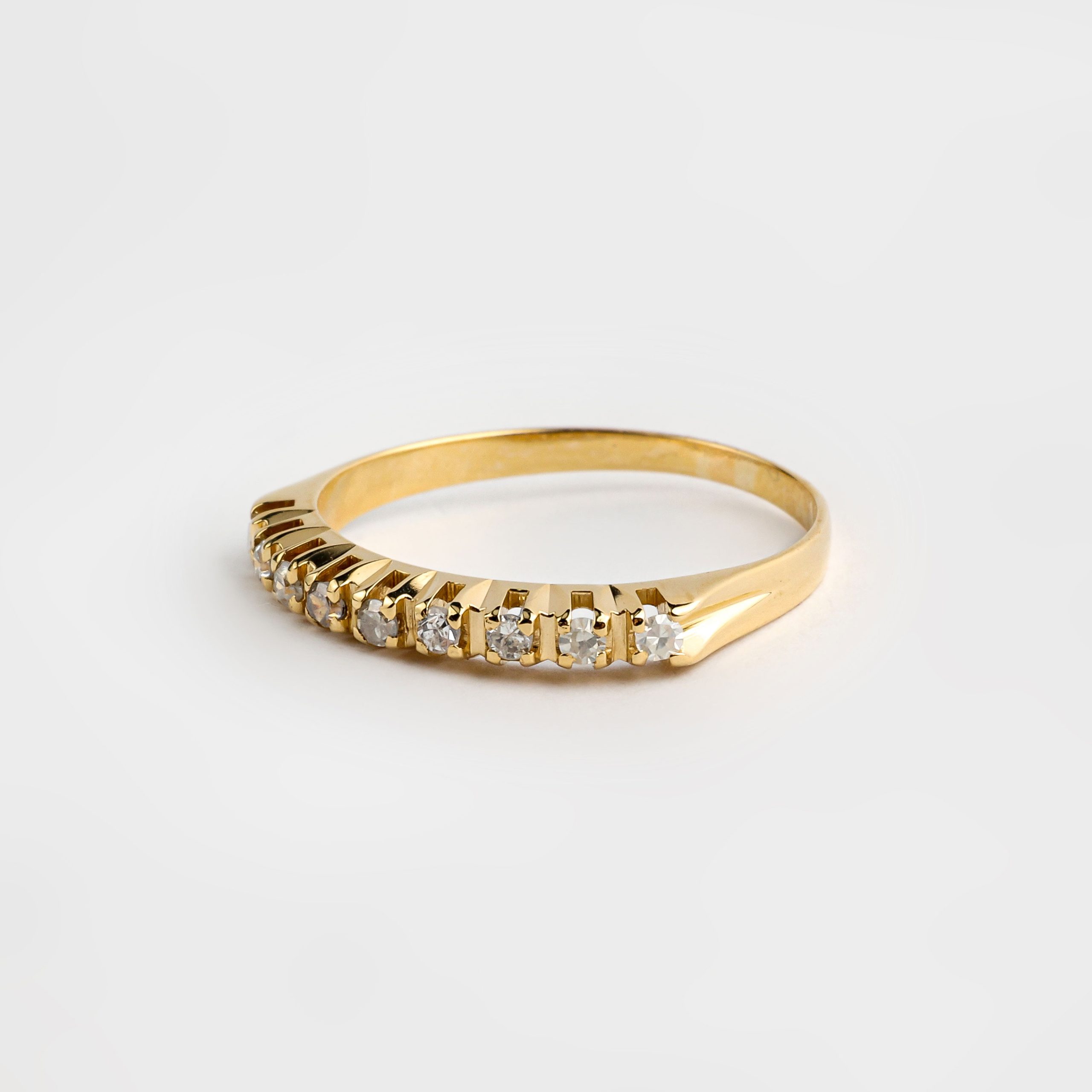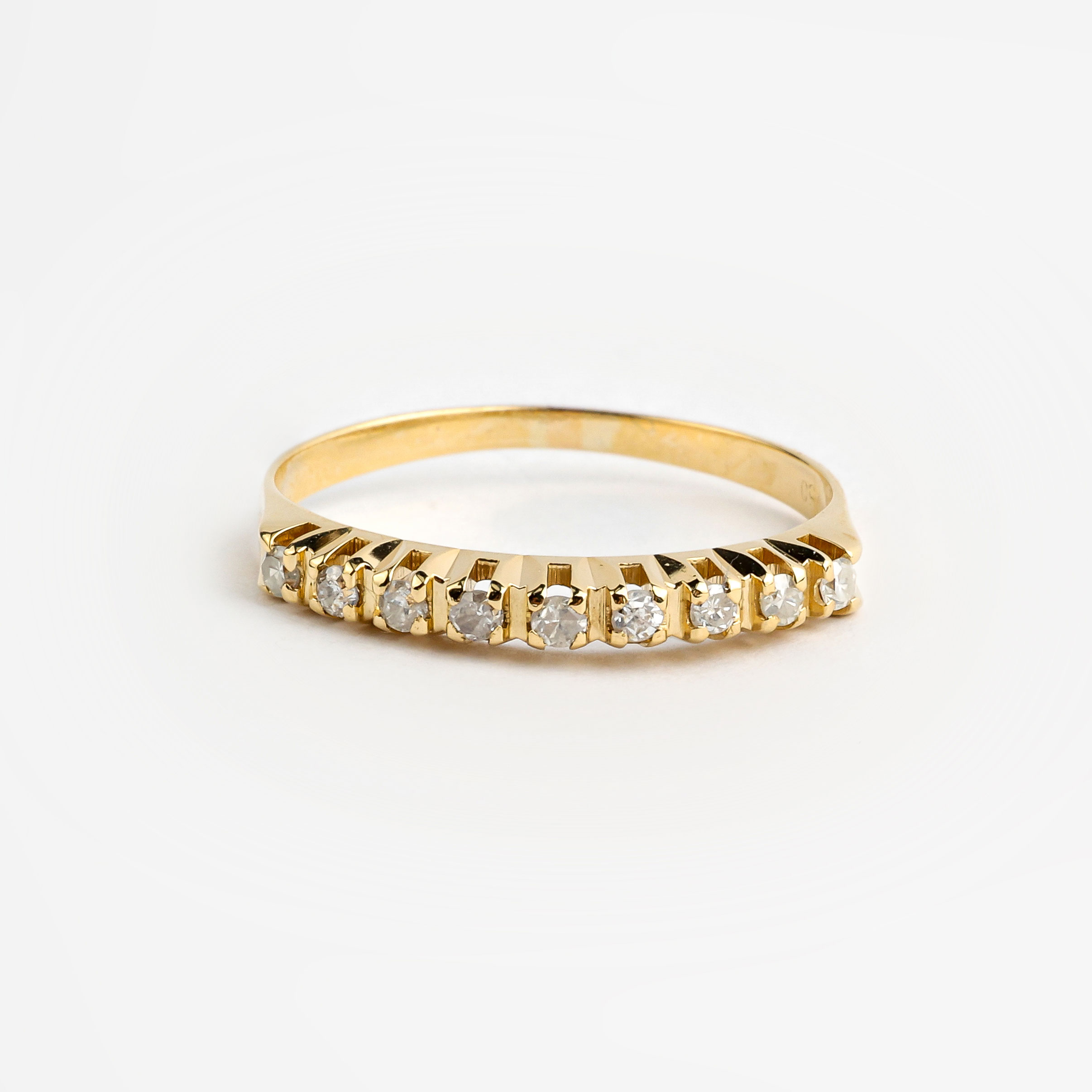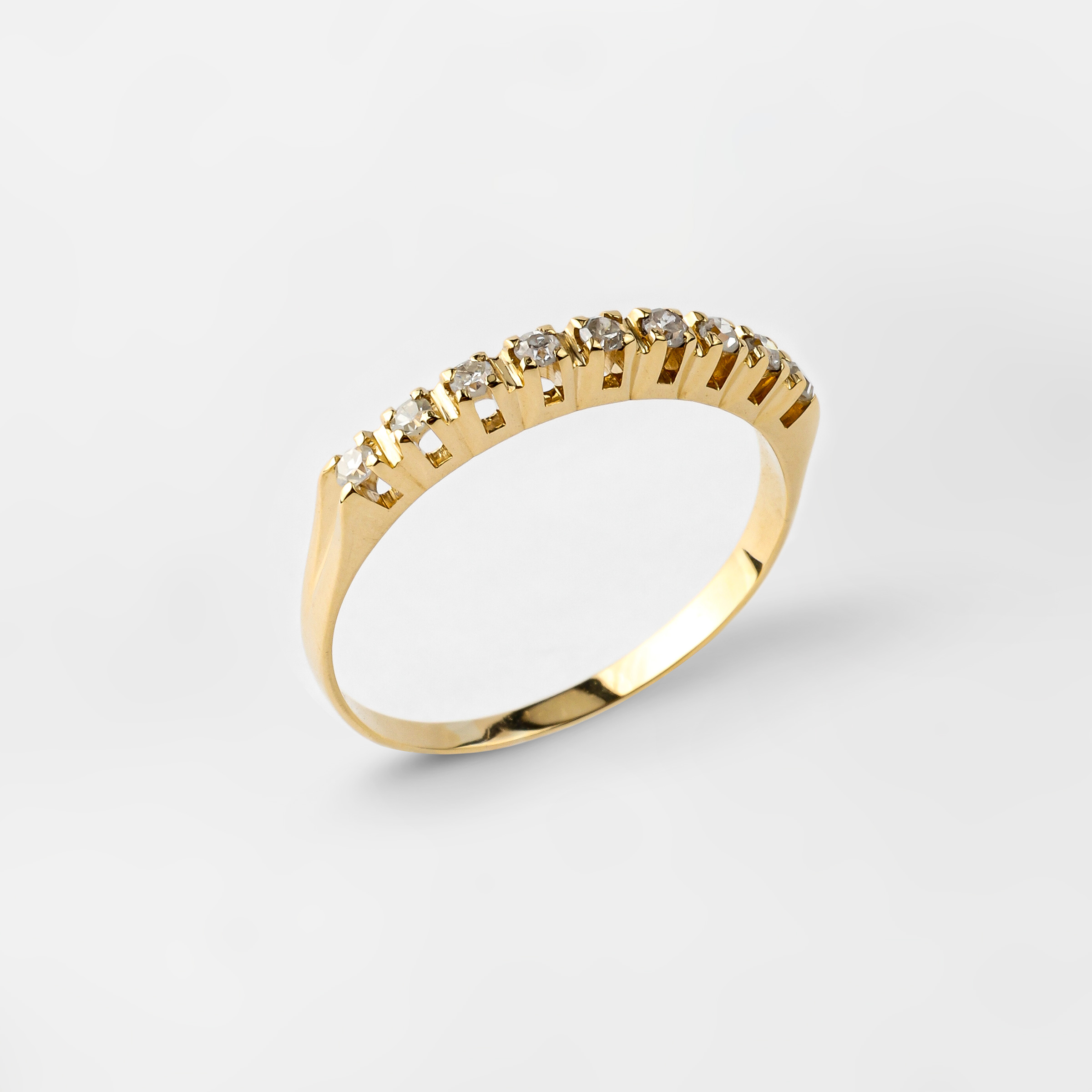 Meia aliança ouro amarelo 18K com 9 diamantes e total de 20 pontos de diamantes.