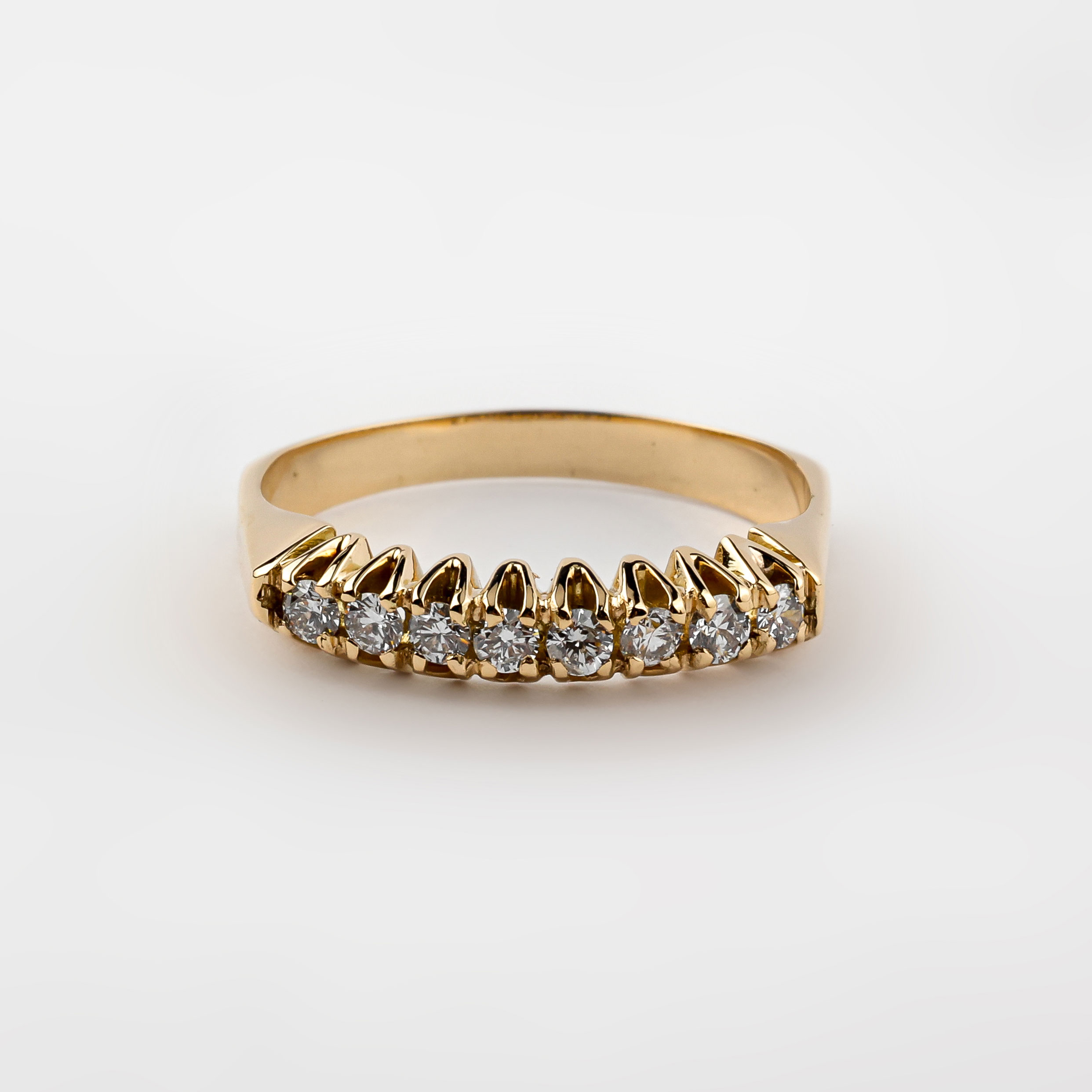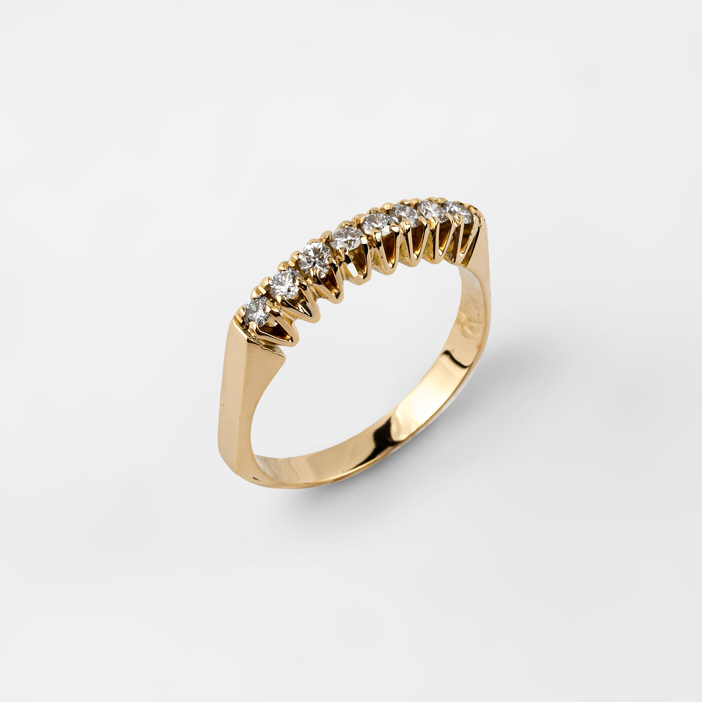 Meia aliança ouro amarelo 18K com 8 diamantes e total de 32 pontos de diamantes.