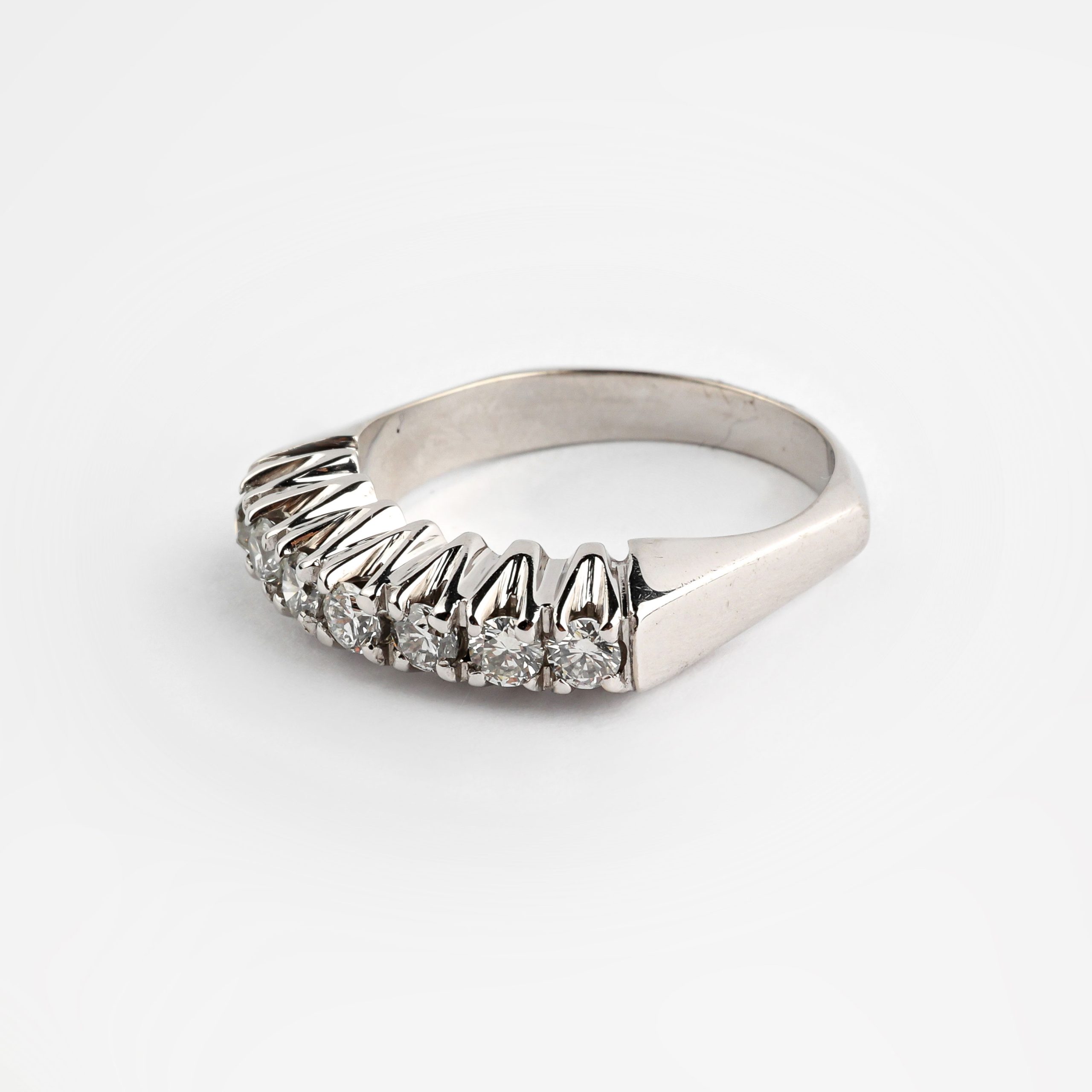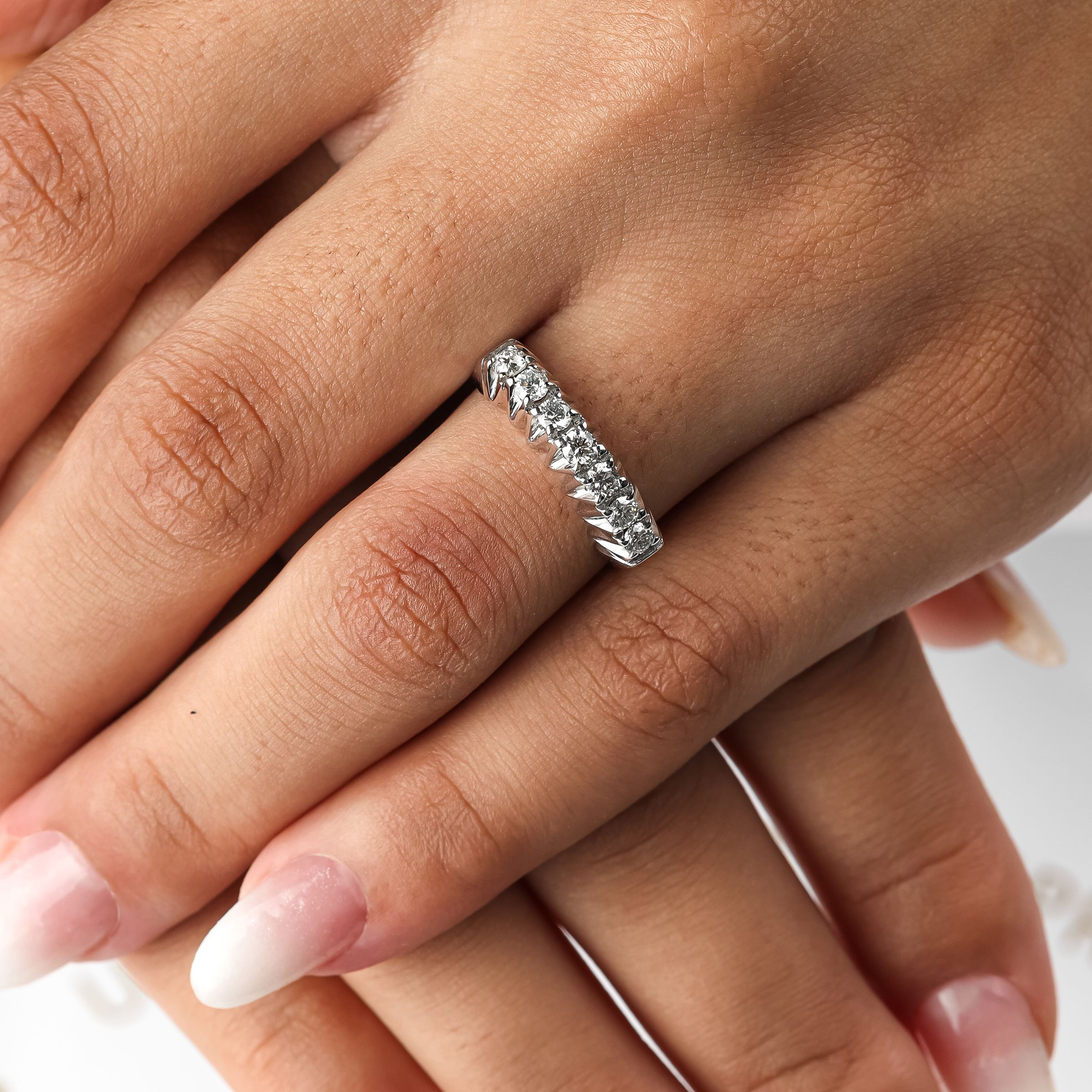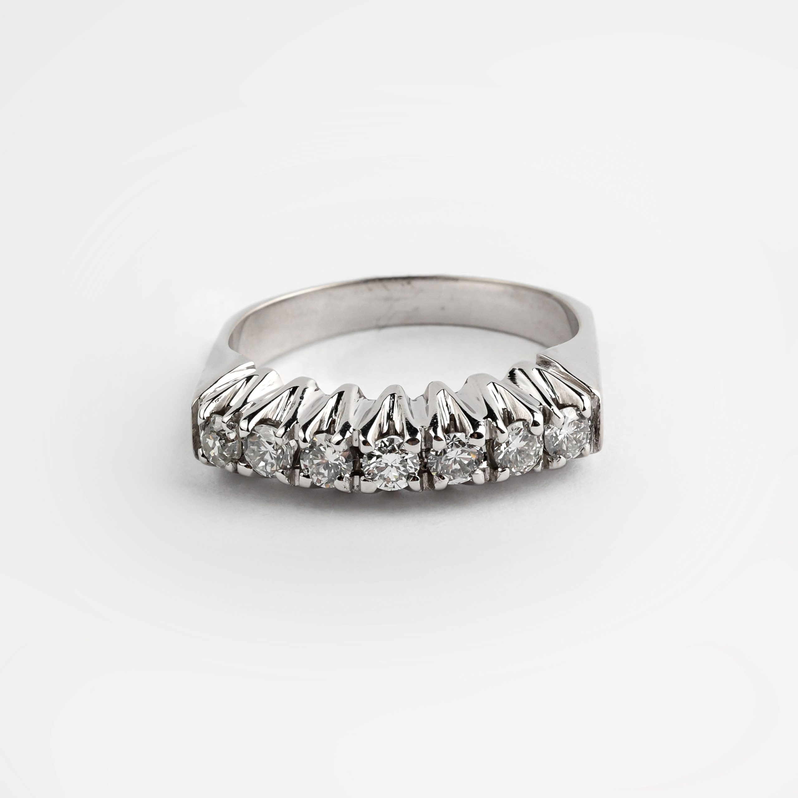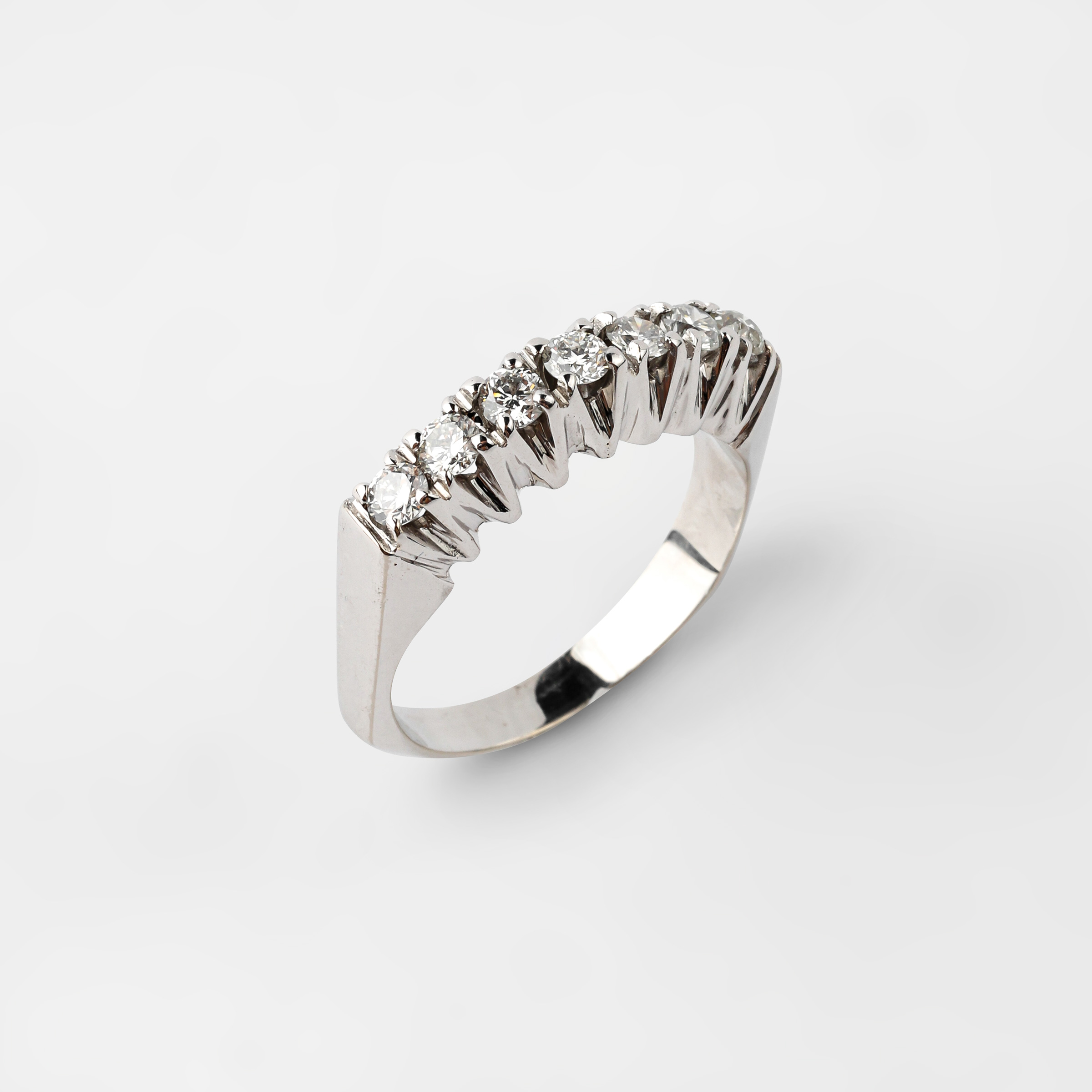 Meia aliança ouro branco 18K com 7 diamantes e total de 56 pontos de diamantes.