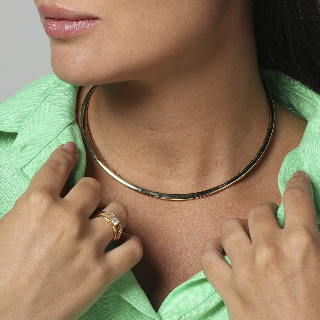 Meia Aliança ouro amarelo 18K com 55 pontos de diamantes
