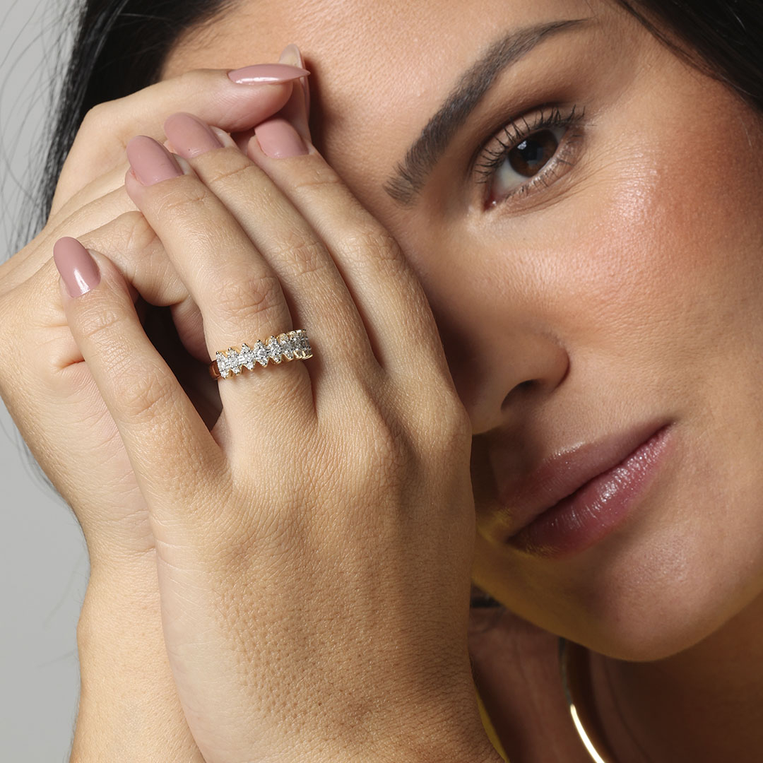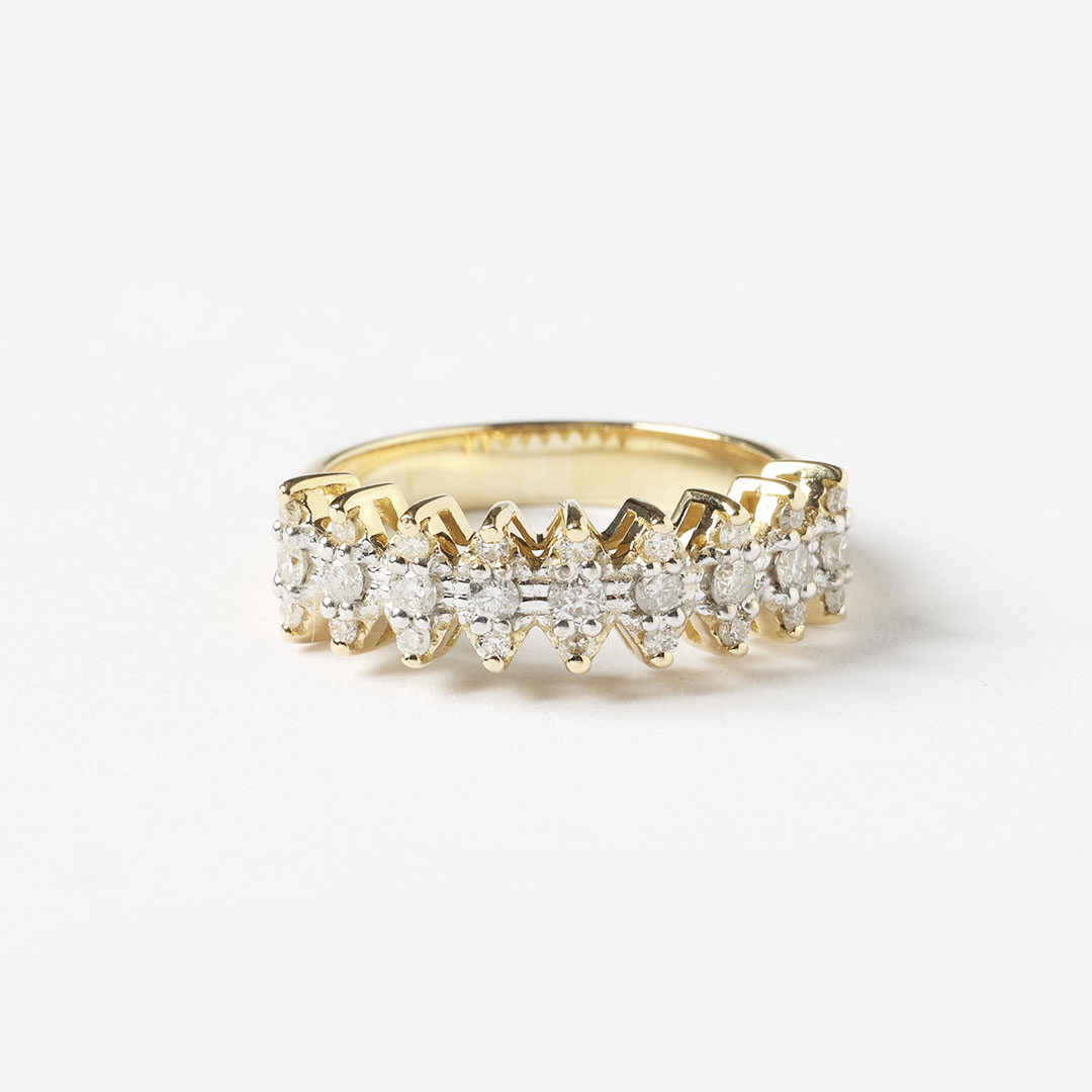 Meia Aliança ouro amarelo 18K com 45 pontos de diamantes.