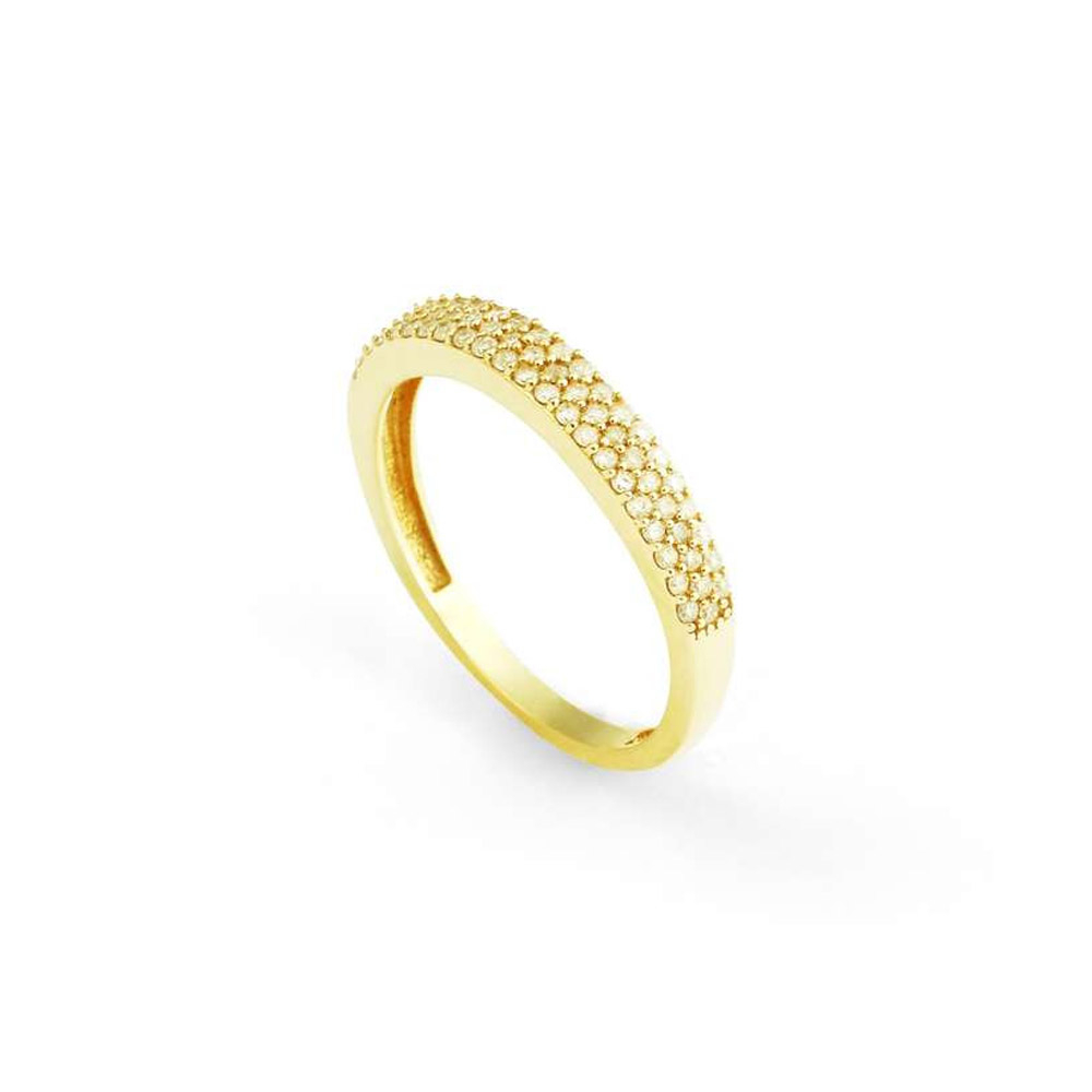 MEIA ALIANÇA OURO AMARELO 18K COM TRÊS FILEIRAS CRAVEJADAS NA PARTE SUPERIOR COM 66 DIAMANTES DE 0,5 PONTOS CADA