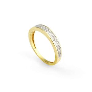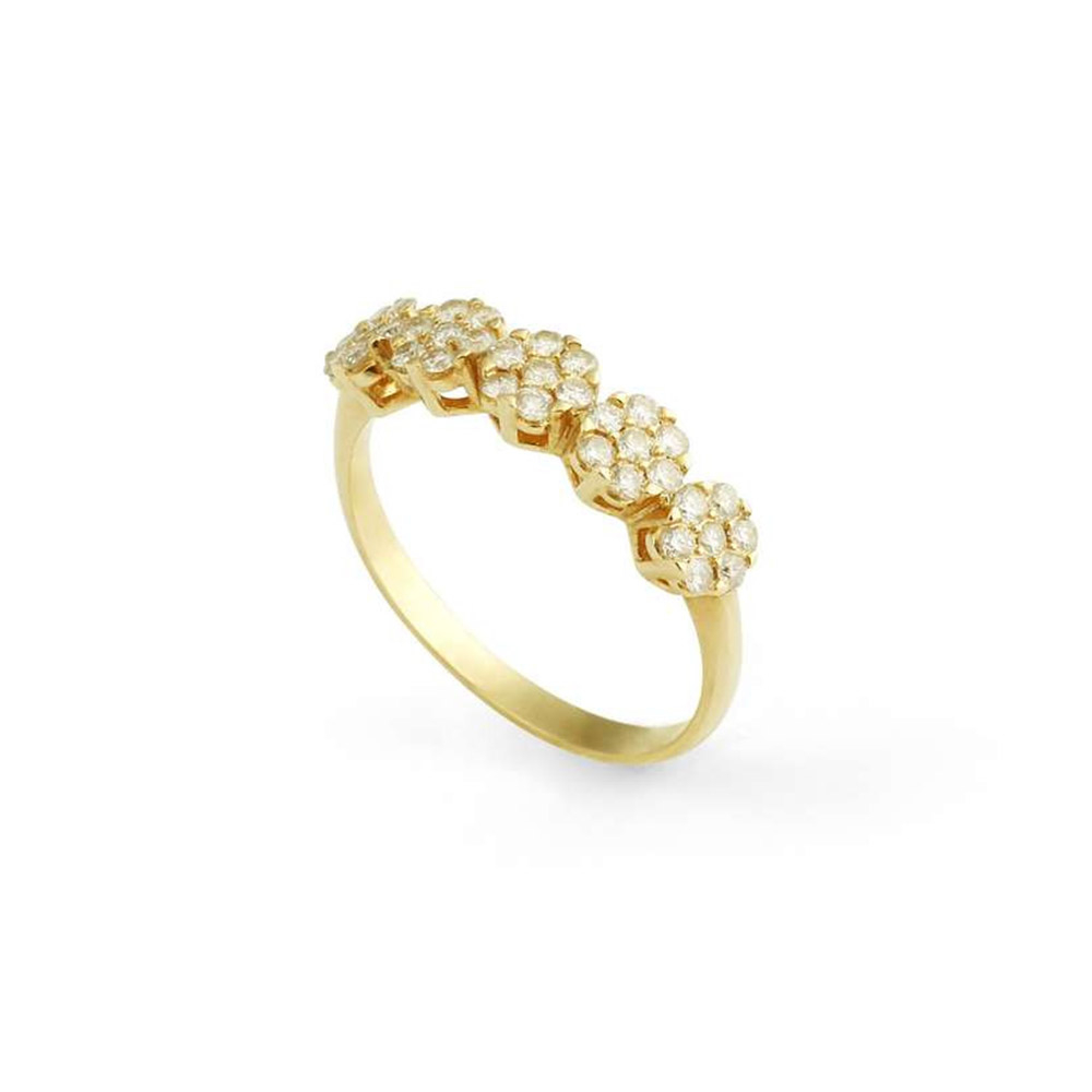 MEIA ALIANÇA OURO AMARELO 18K COM CINCO FLORES CRAVEJADAS NA PARTE SUPERIOR COM 35 DIAMANTES