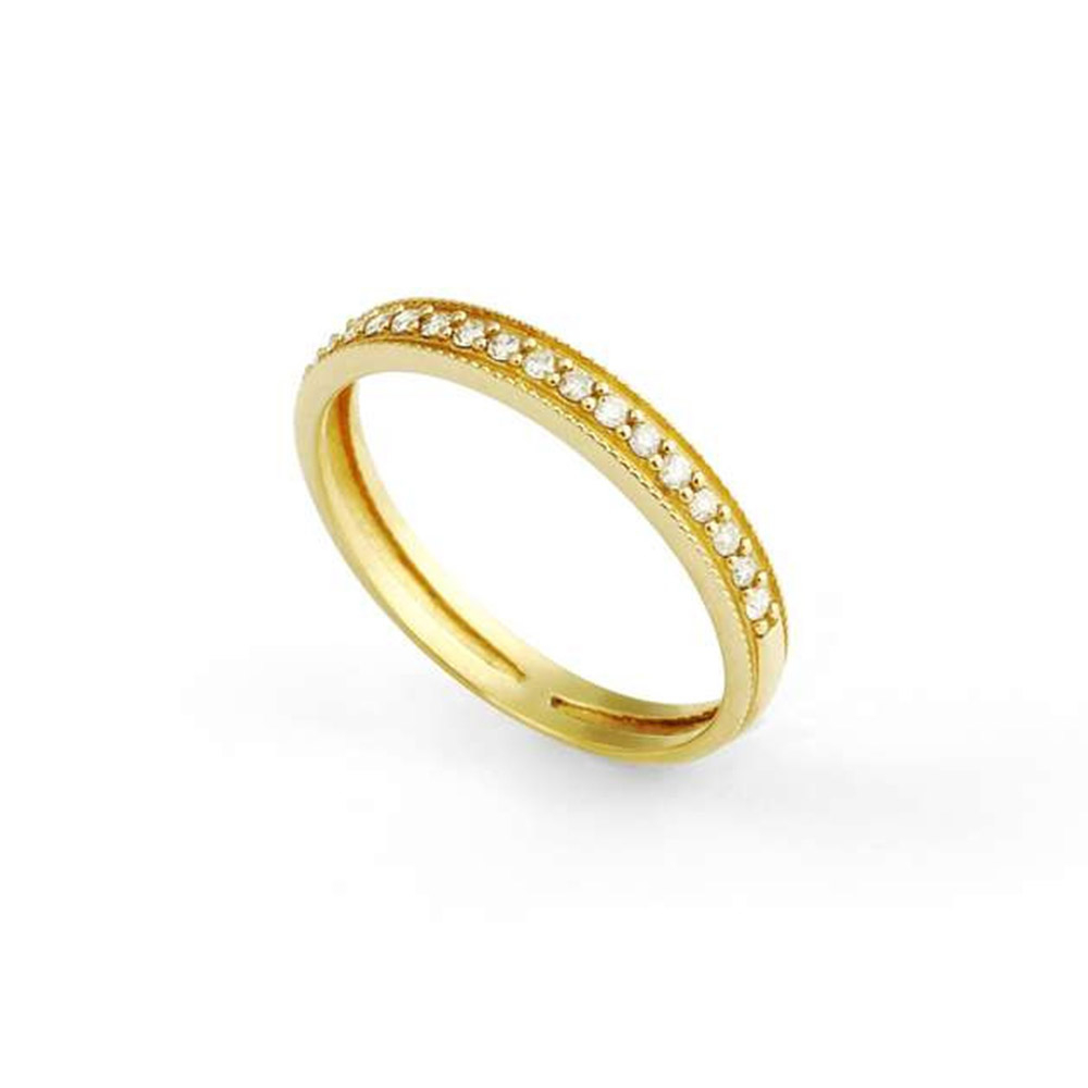 MEIA ALIANÇA OURO AMARELO 18K COM BOLINHAS EM OURO AMARELO E DIAMANTES CRAVEJADOS NA PARTE SUPERIOR