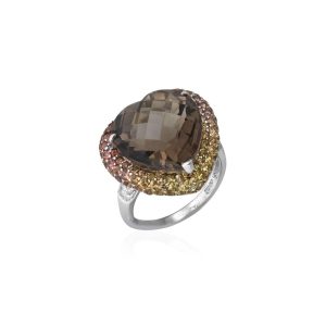 Meia Aliança ouro amarelo 18K com diamantes e esmeraldas.