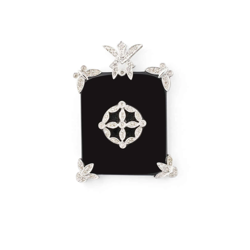 PINGENTE OURO BRANCO 18K COM ÔNIX PRETA E DIAMANTES